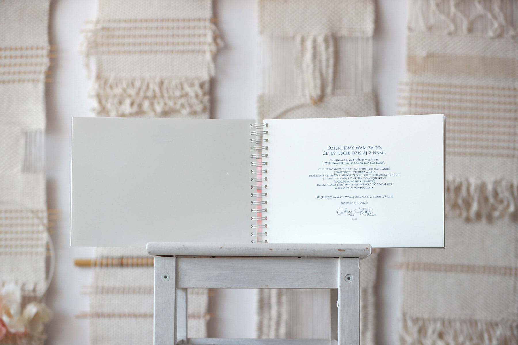 Na pierwszej stronie po otworzeniu umieścimy podziękowania dla gości i prośbę o wpisywanie się, które dołączycie do zamówienia.
