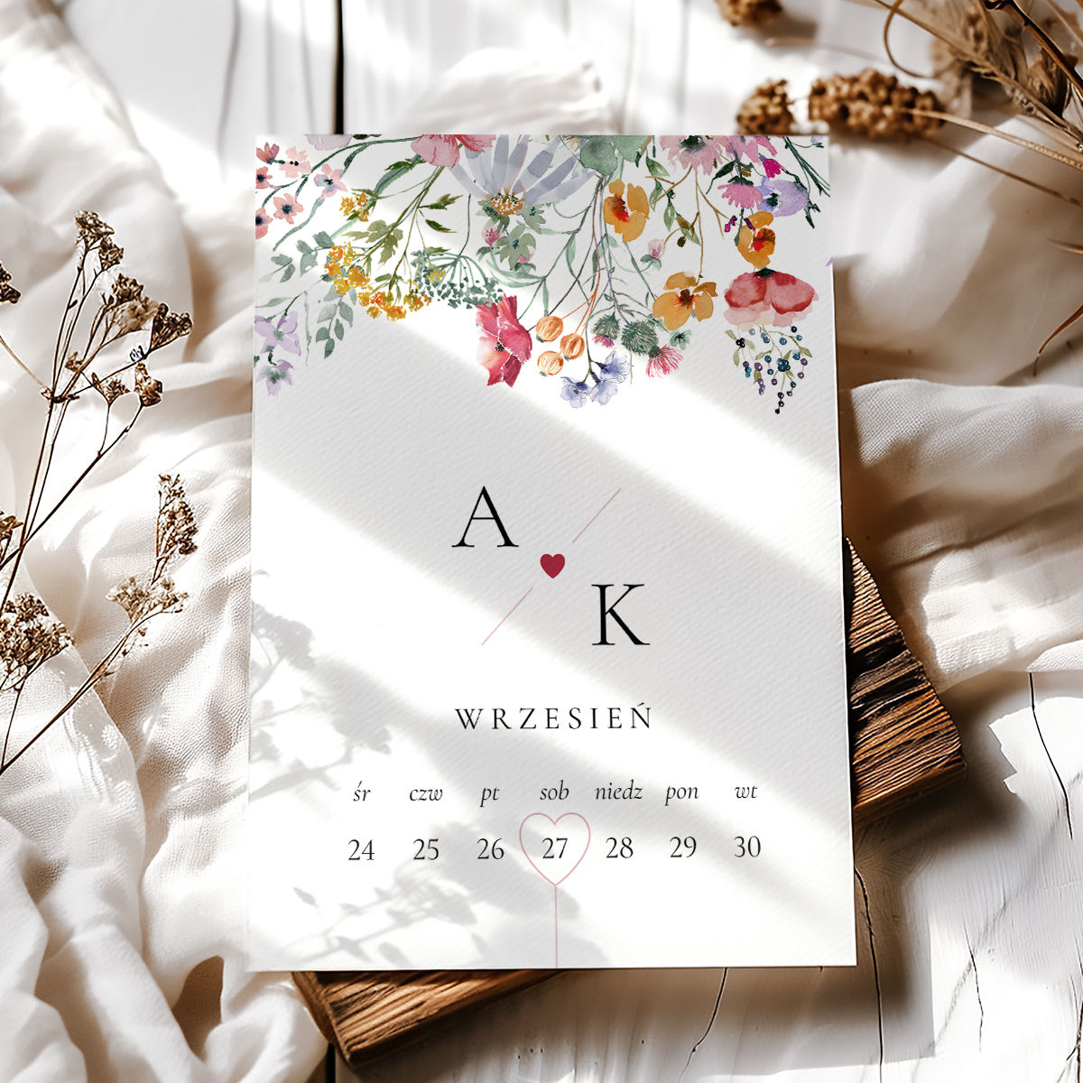 Zaproszenia ślubne Polna Sielanka - jednokartowe 12x17