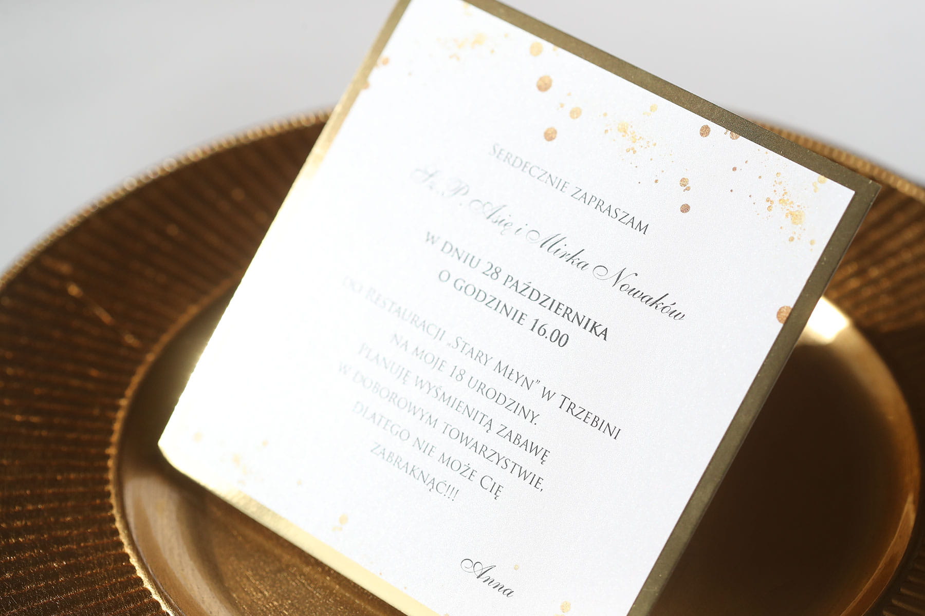 Biało złote zaproszenia na 18 urodziny - kolekcja glamour!