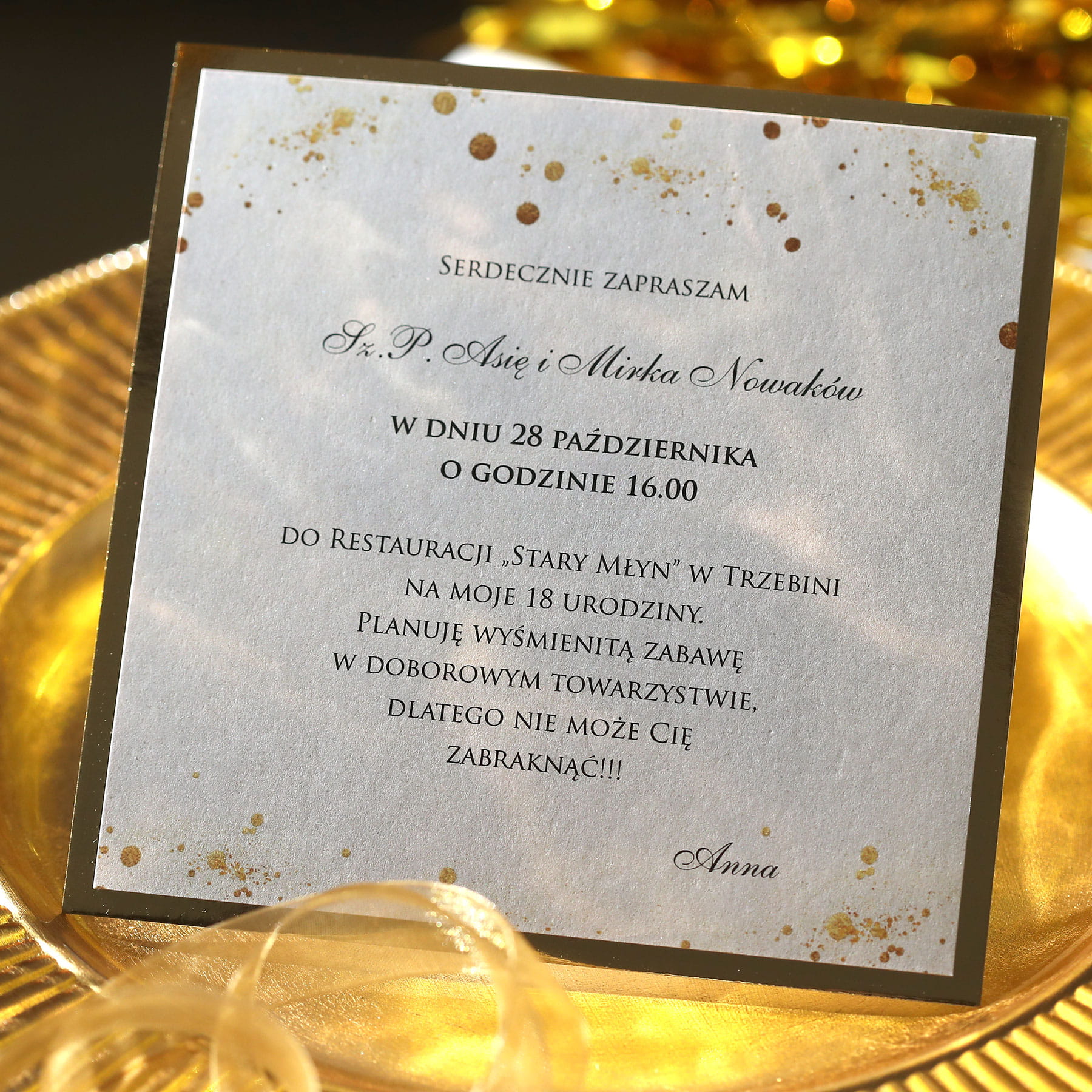 Imiona i nazwiska gości na zaproszeniach na 18