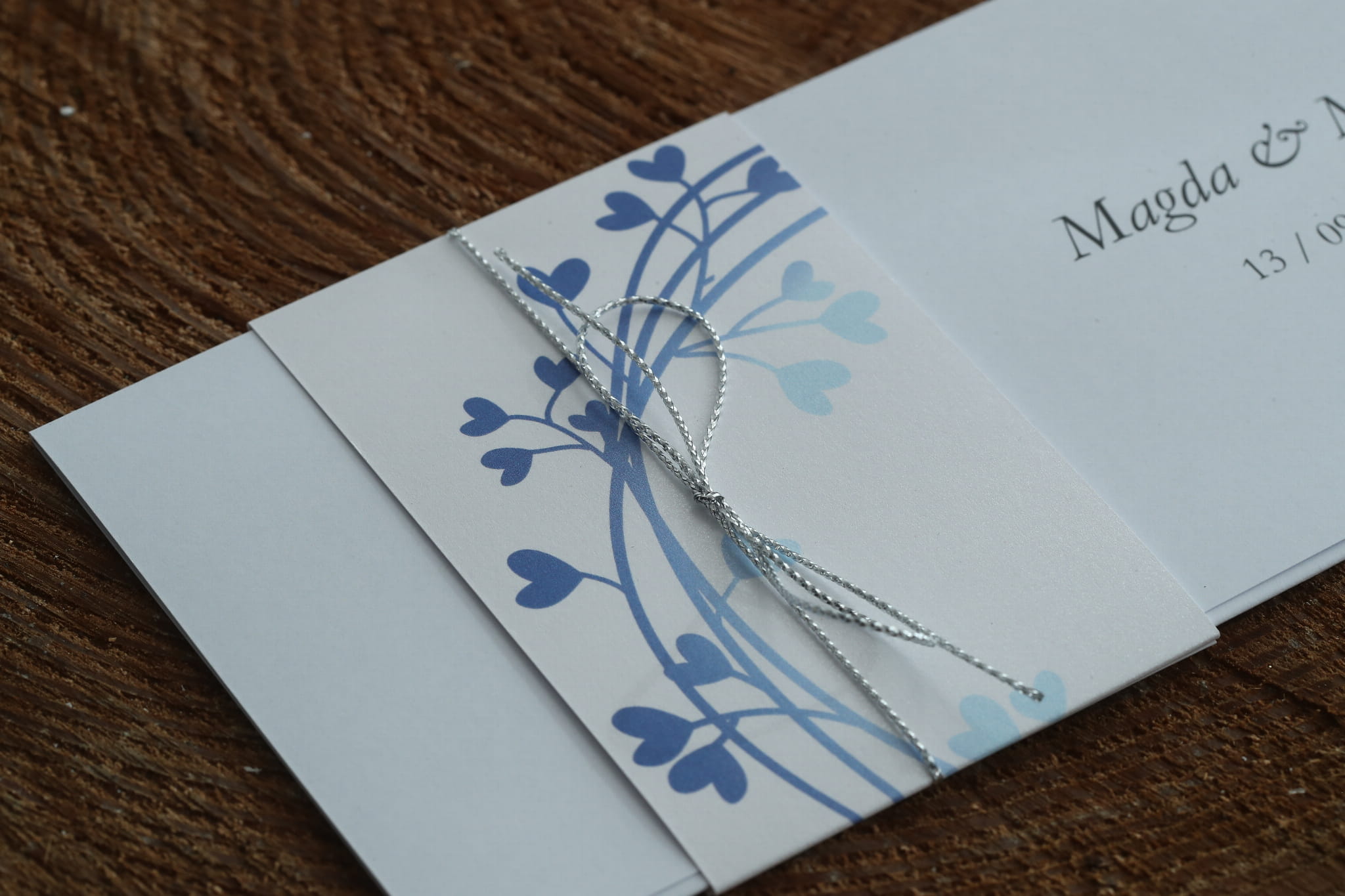 sztywnym w dotyku o gramaturze 250g, - Zaproszenie jest wsunięte w obwolutę, którą trzeba zsunąć aby przeczytać treść,