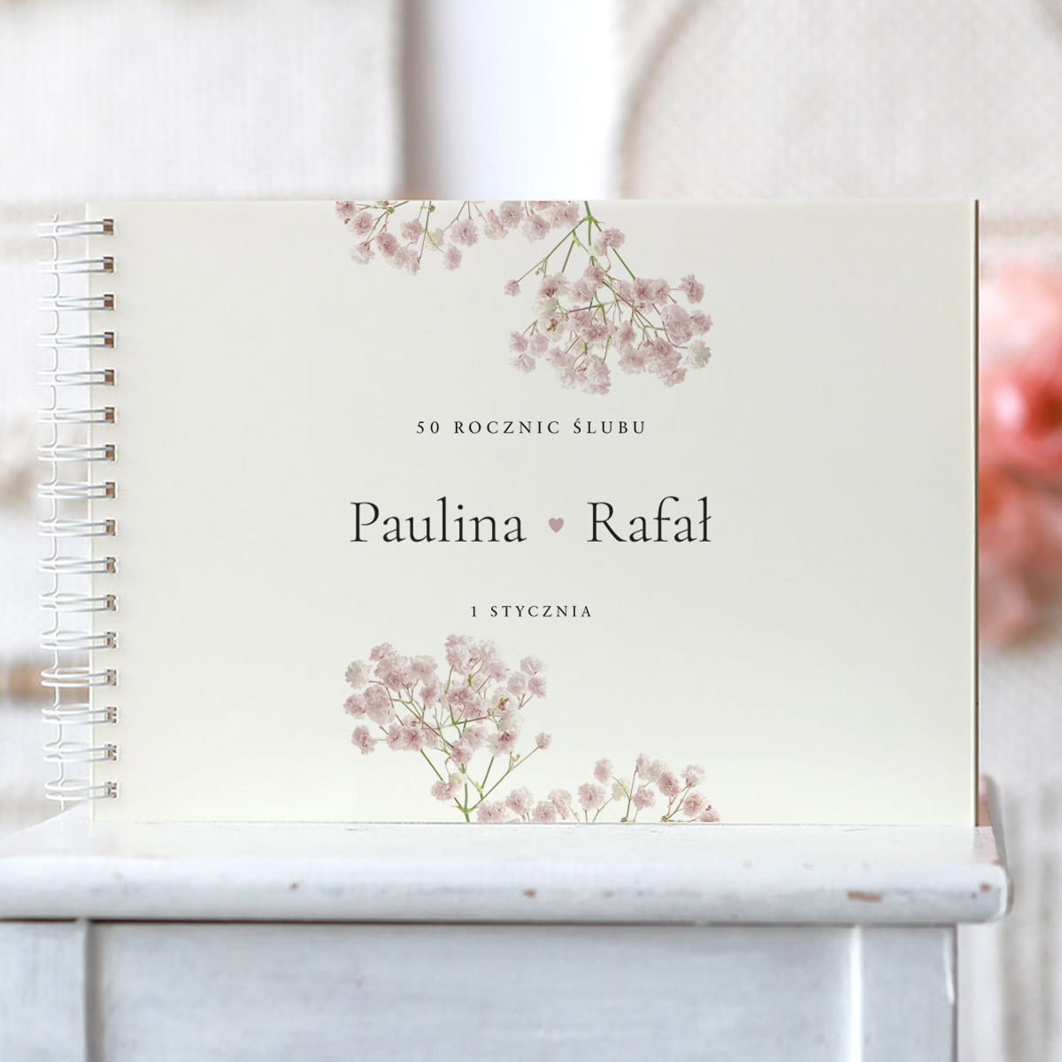 Pierwszą stronę okładki zdobimy wybranym wzorem, imionami i datą ślubu pary młodej.