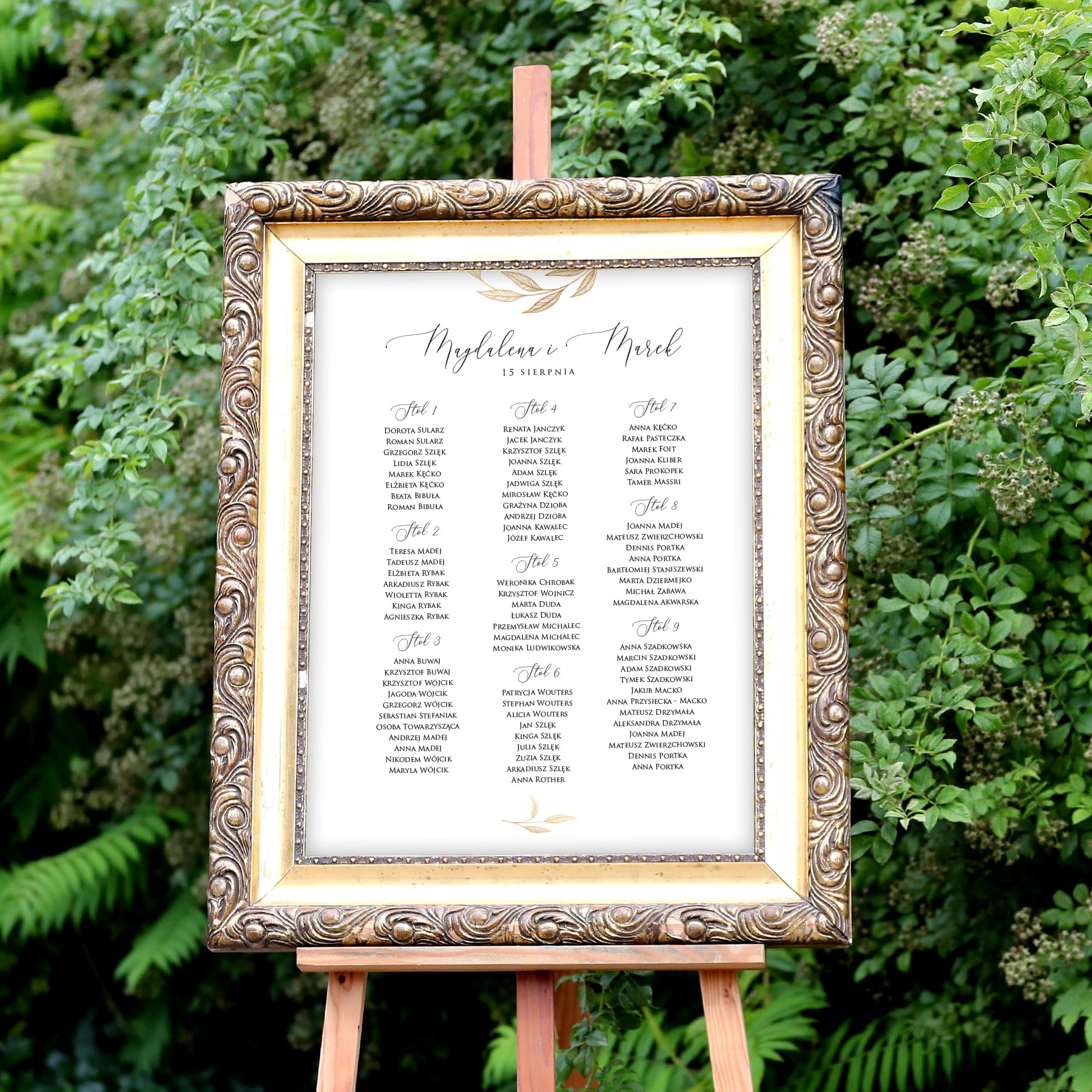 Plan rozmieszczenia stołów i gości ze złotą gałązką