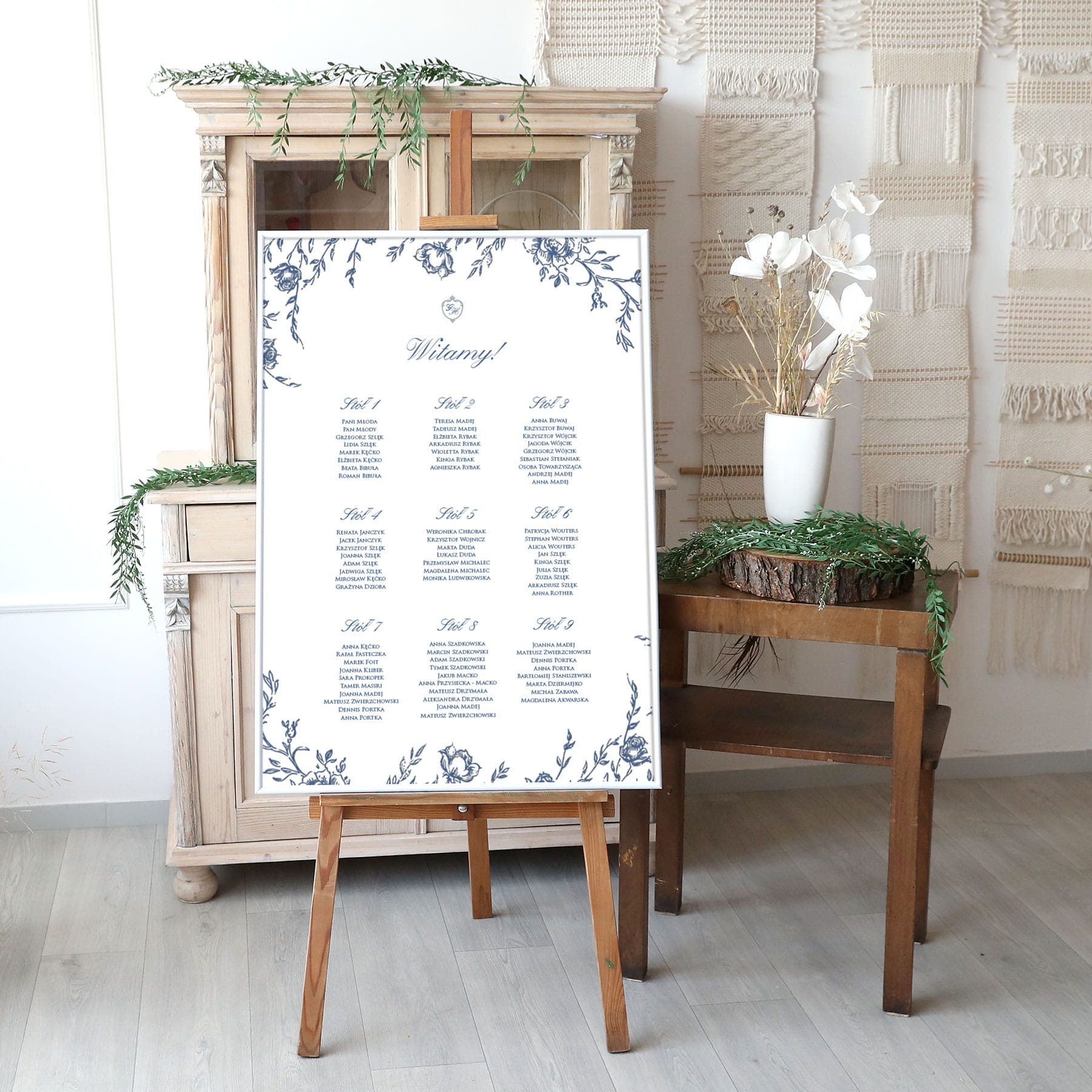 Plan rozmieszczenia stołów i gości - z niebieskimi kwiatami
