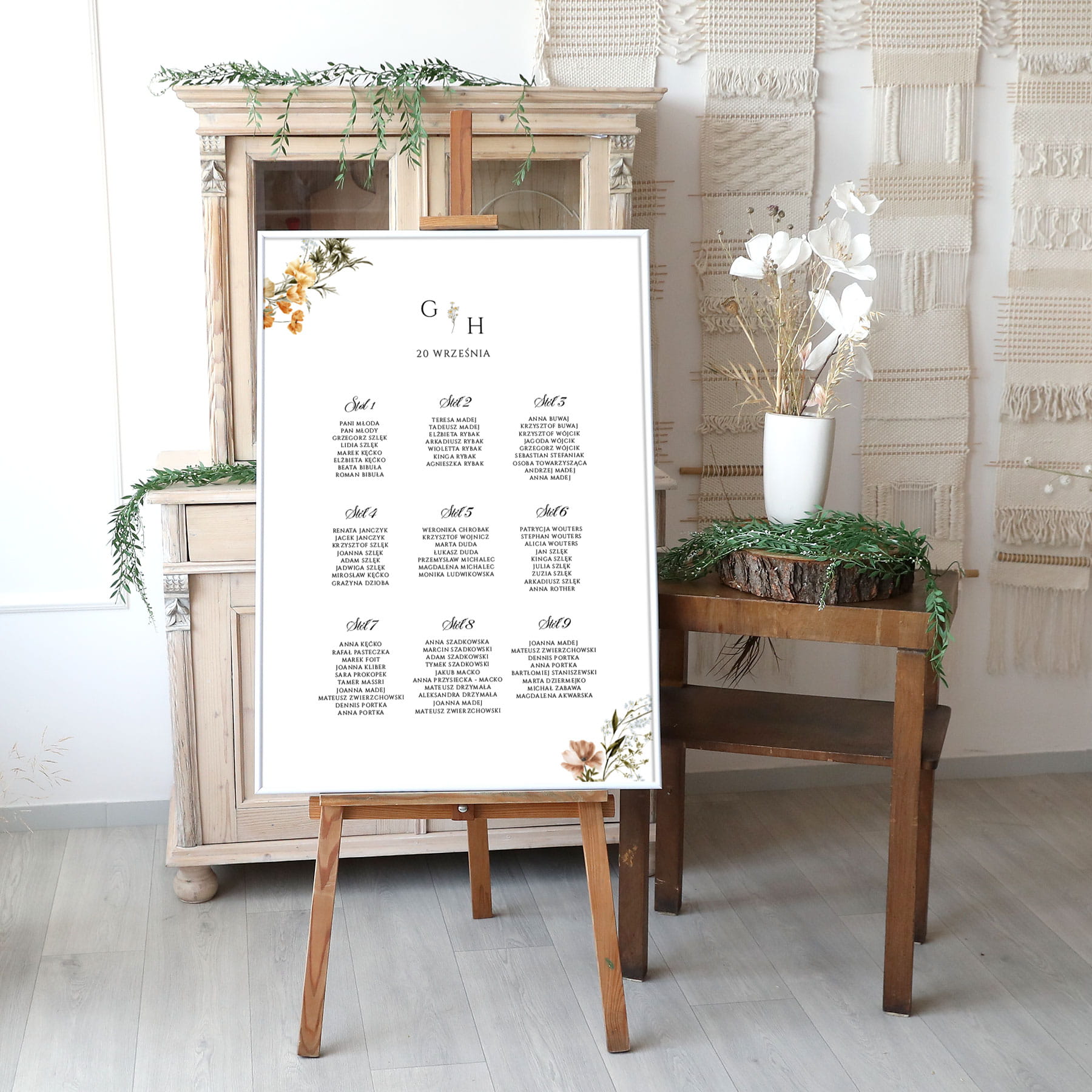 Plan rozmieszczenia stołów i gości - z rustykalnym wiankiem