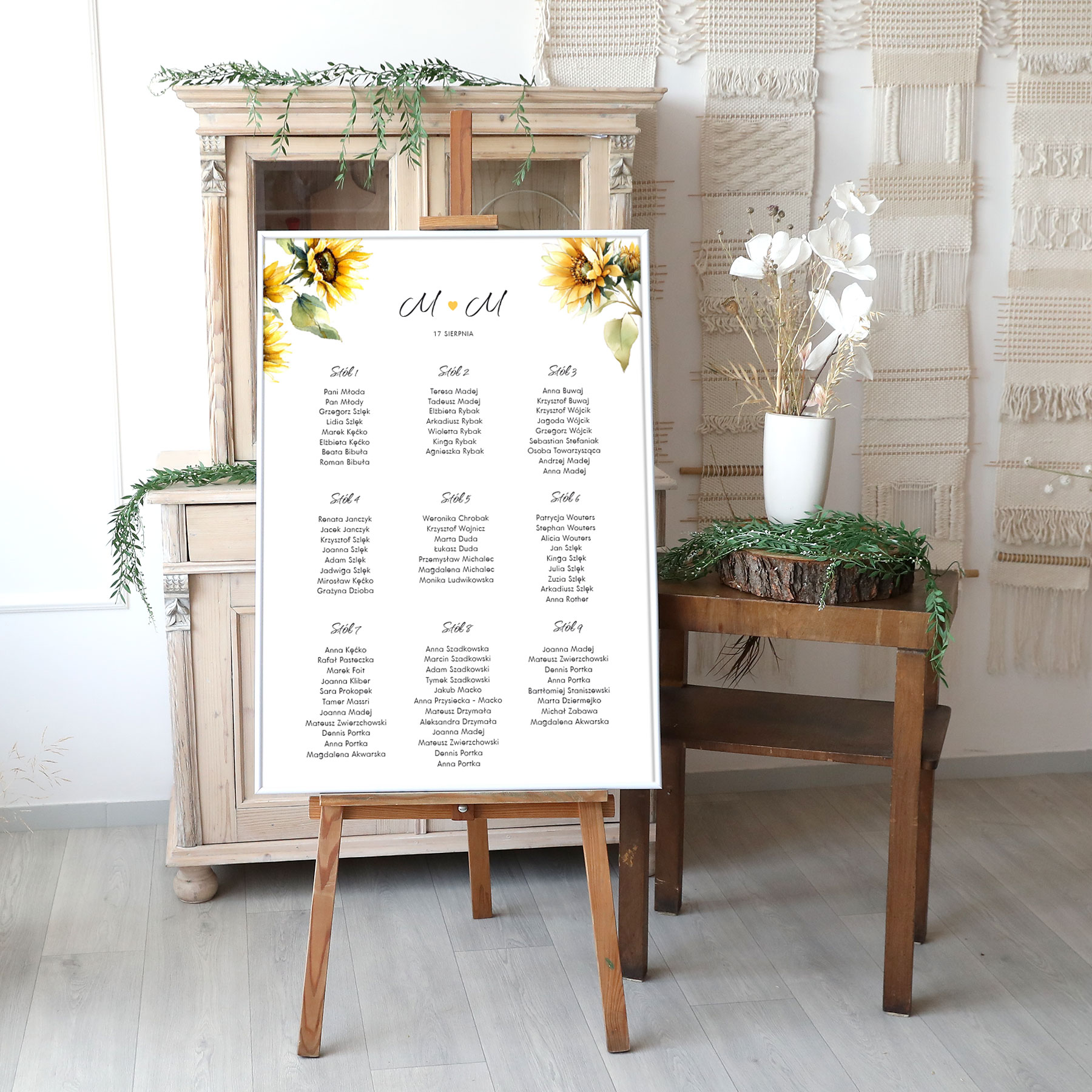 Plan rozmieszczenia stołów i gości - ze słonecznikami