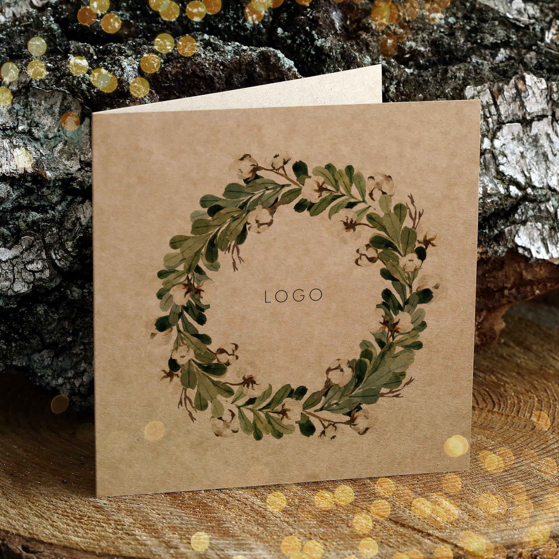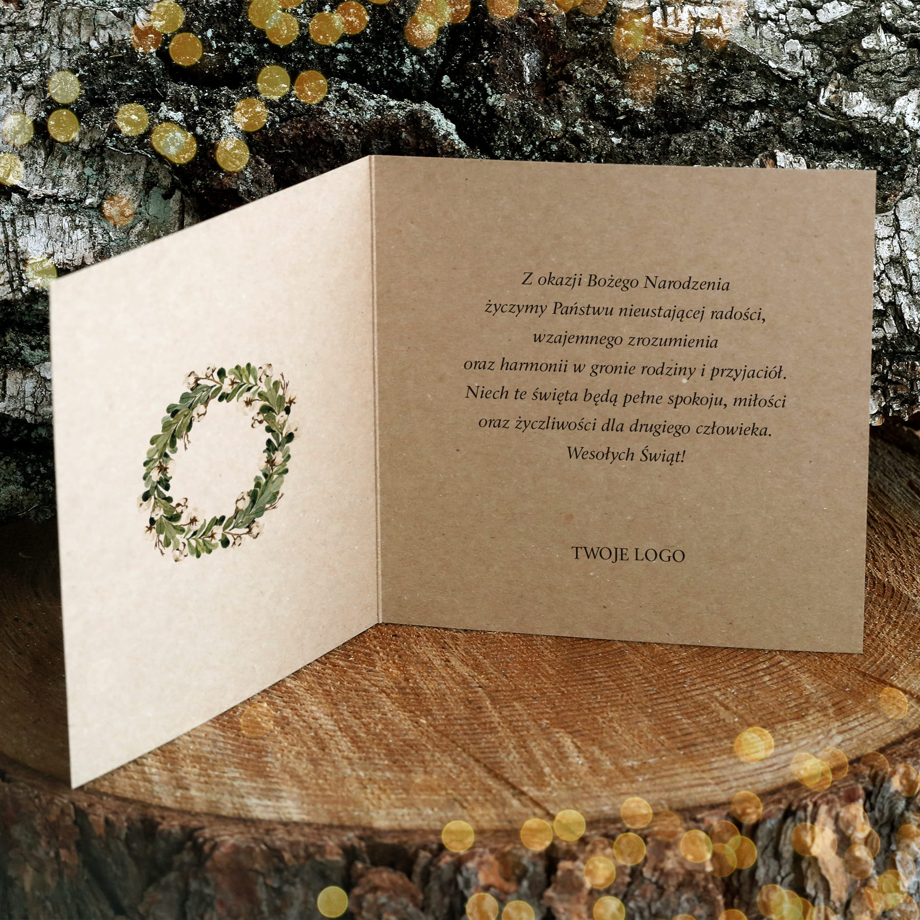 Eko kartki świąteczno-noworoczne dla firm - z świątecznym wiankiem