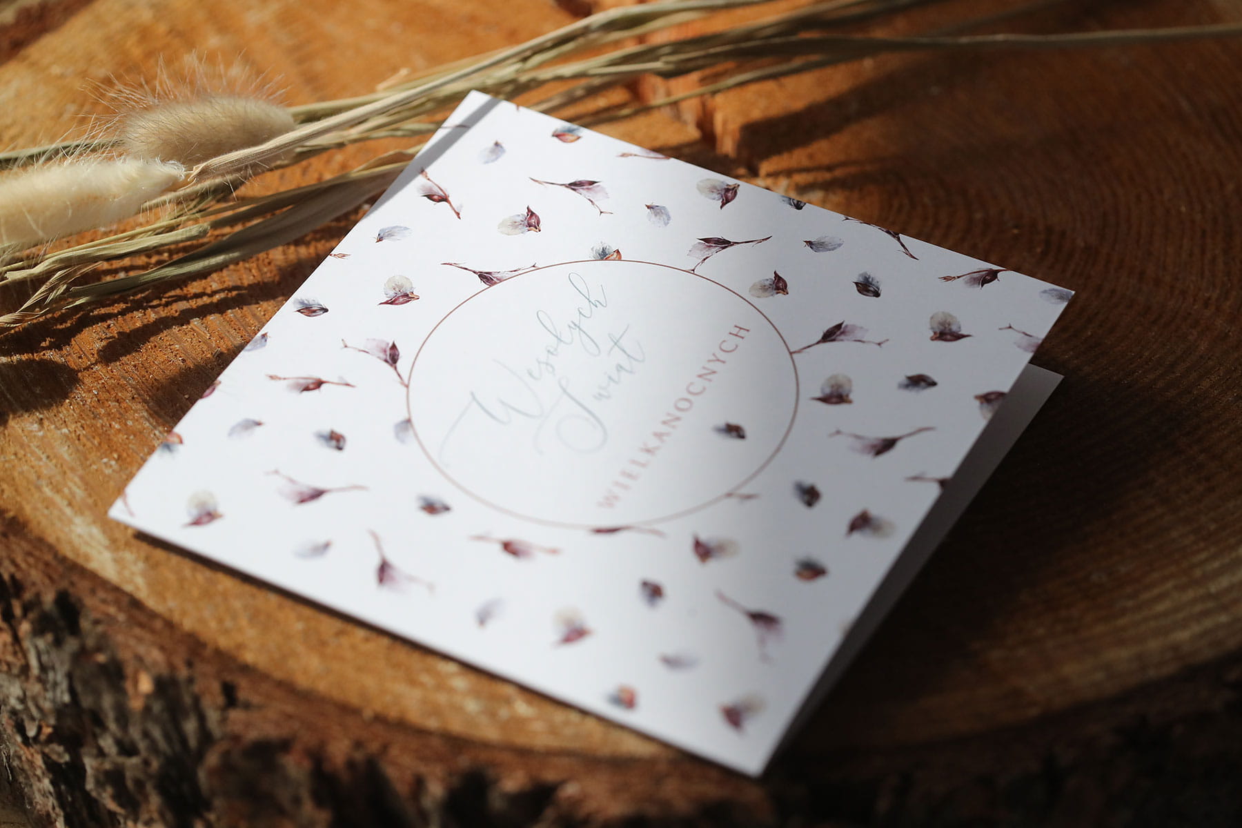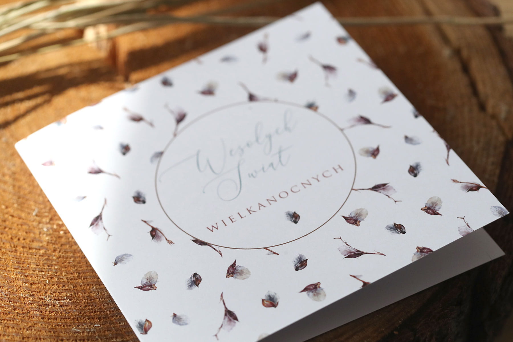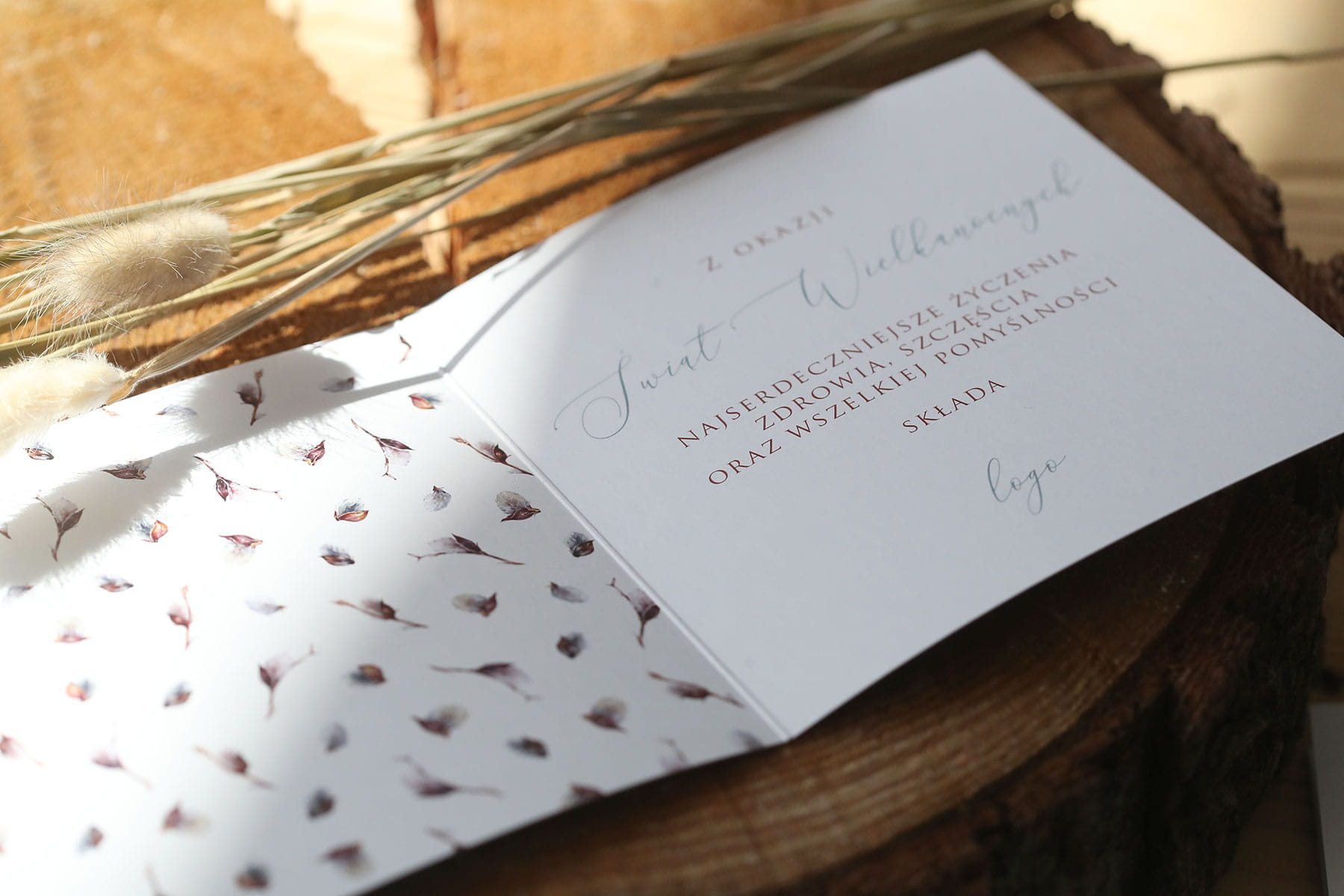 Wielkanocna kartka świąteczna dla firm, na pięknym papierze satynowym 350g.