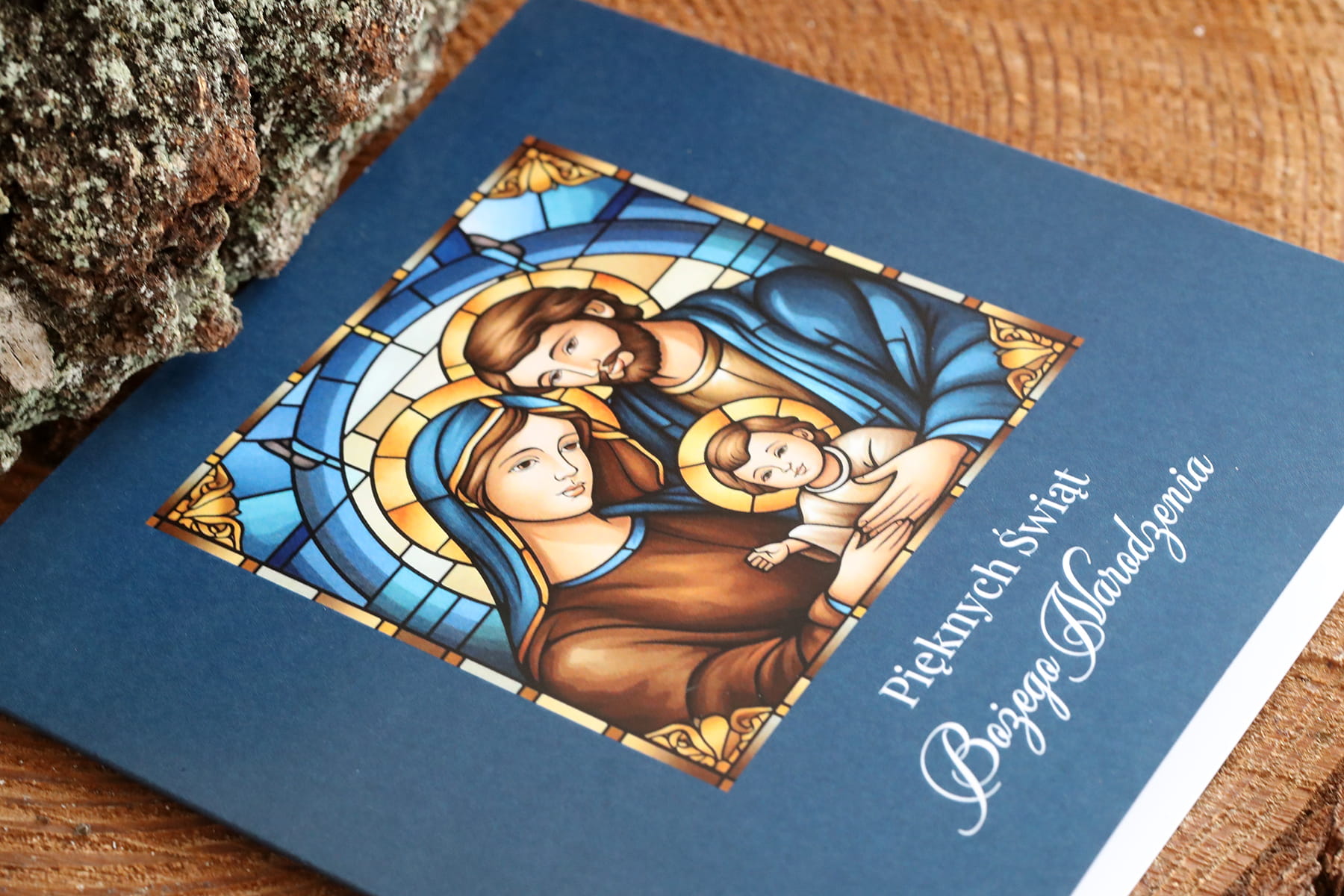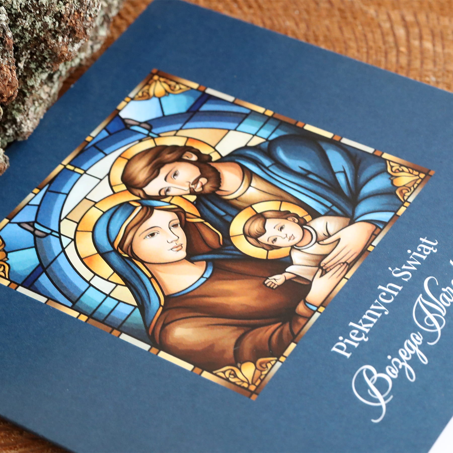 Granatowe Kartki Firmowe - Święta Rodzina - 14,5x14,5 cm