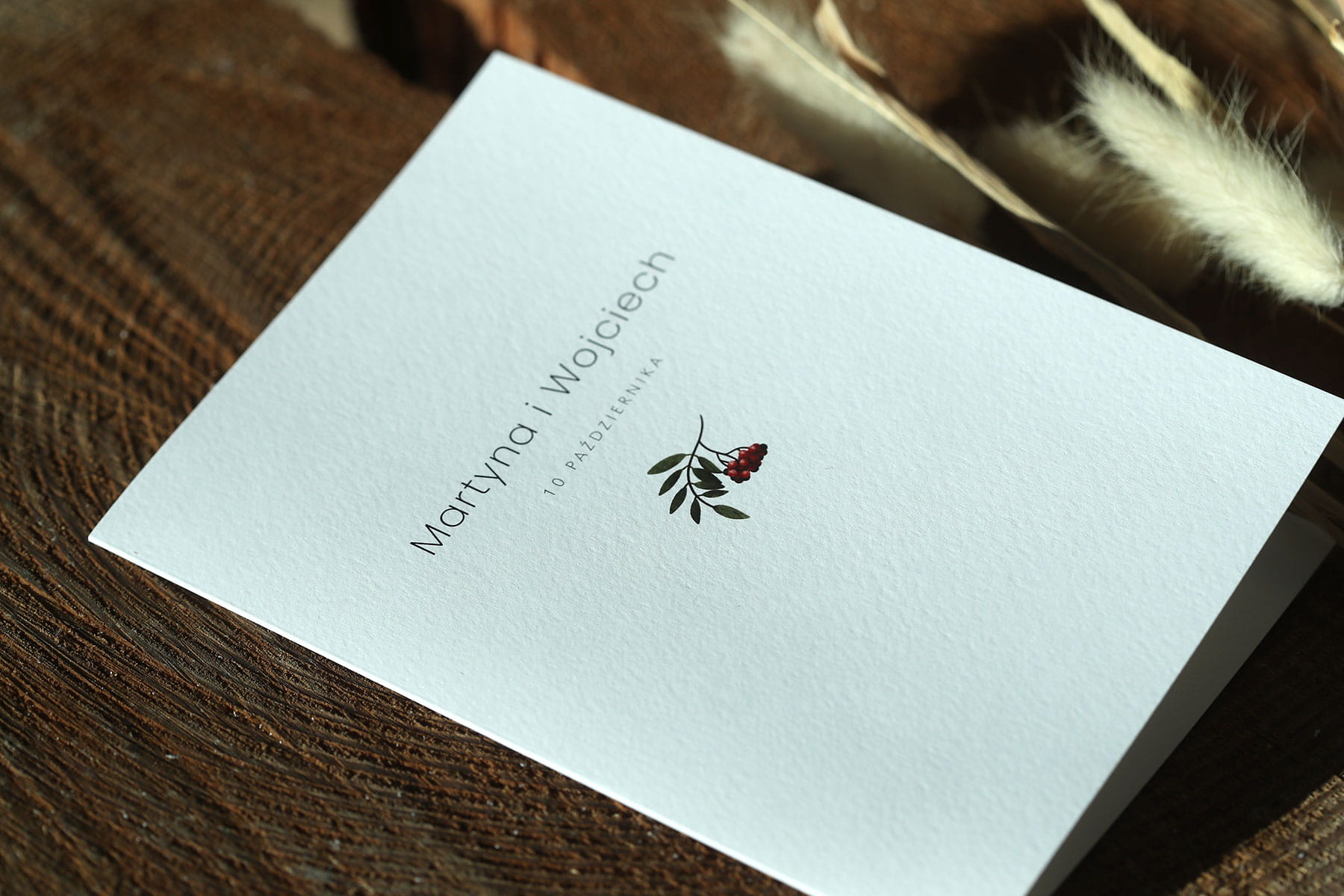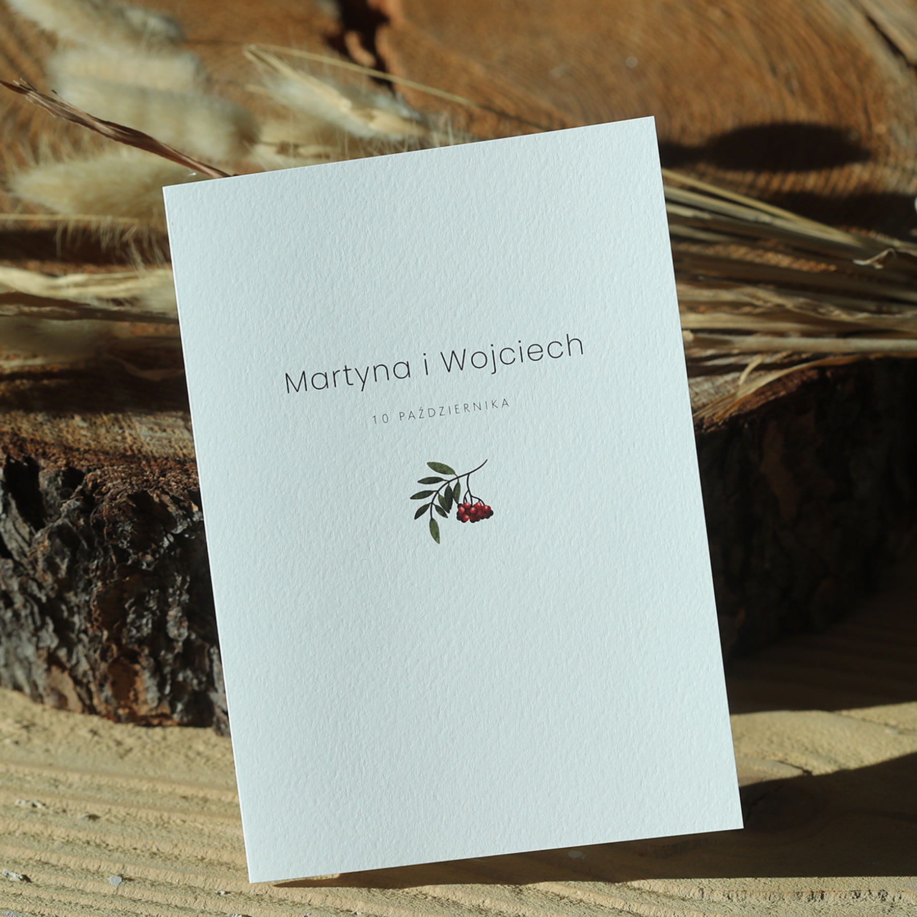 Jesienne zaproszenie ślubne z jarzębiną