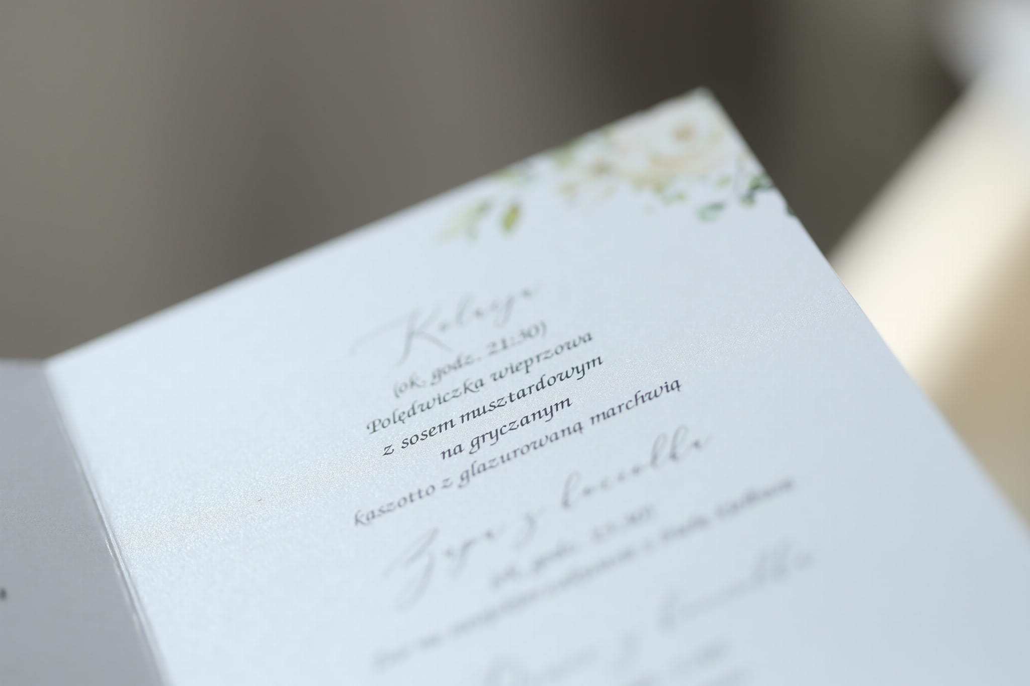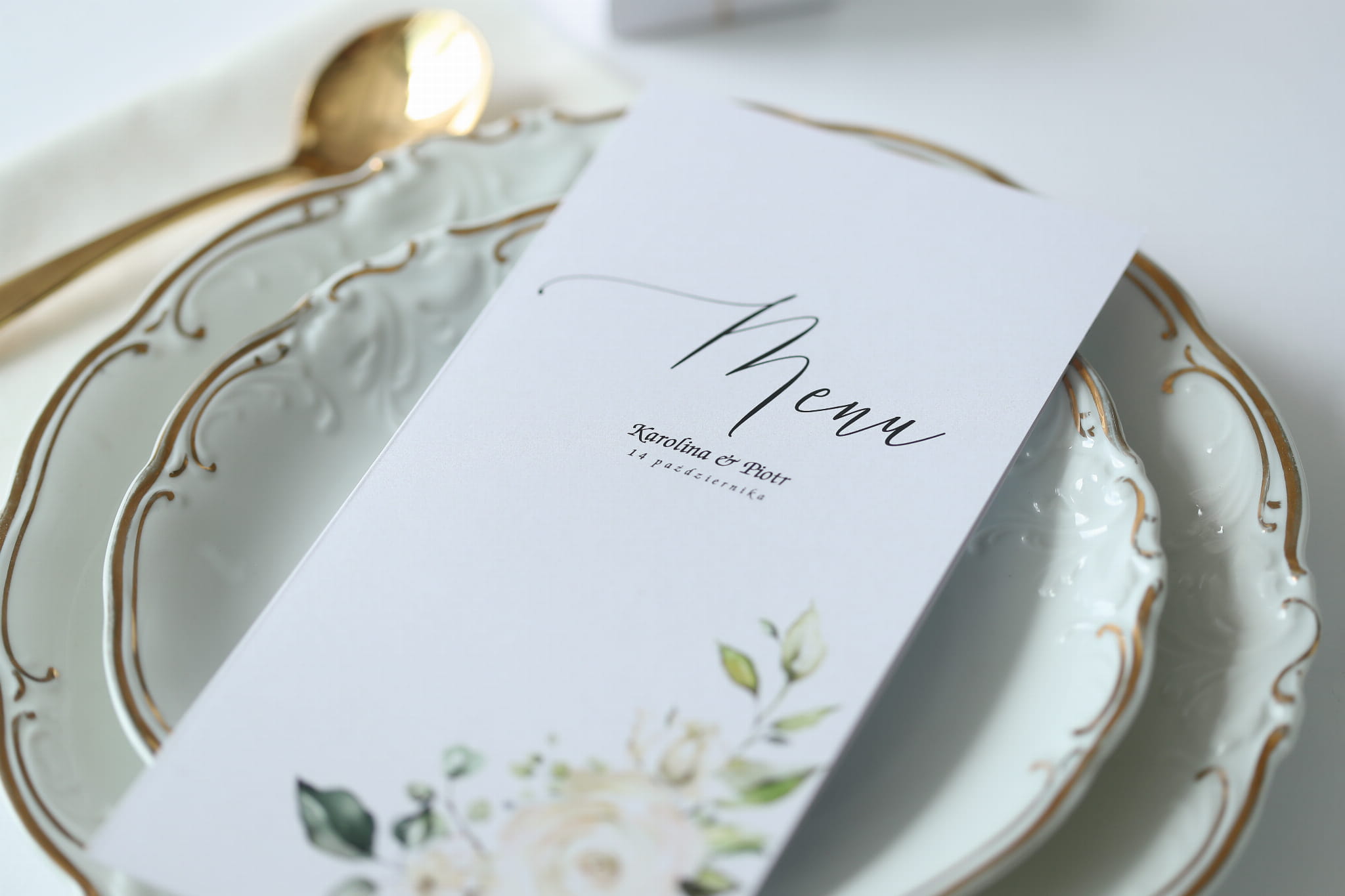 Karta menu z kolekcji subtelnej z motywem białych róż