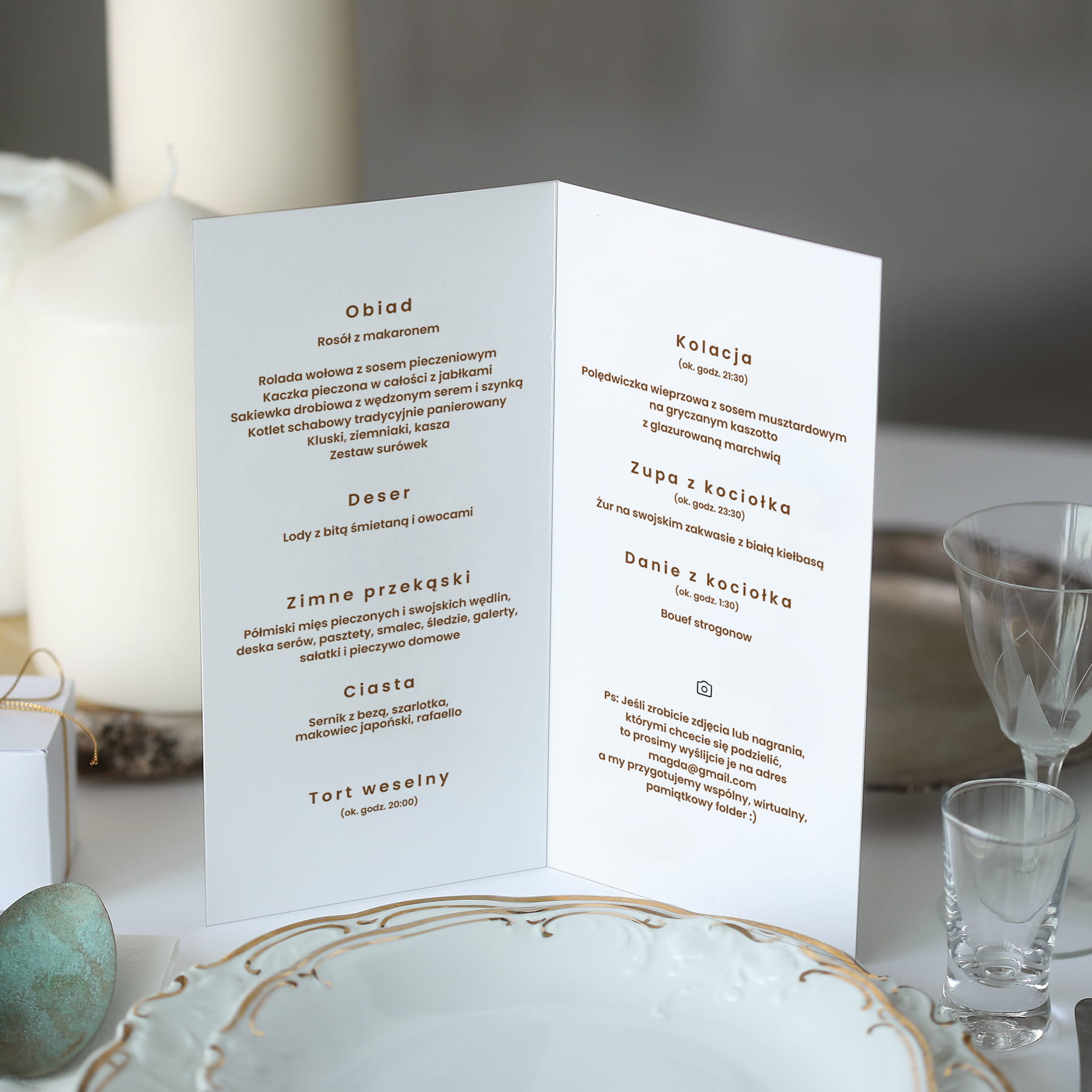 - menu weselne duże, składane do formatu 10x29,7 cm