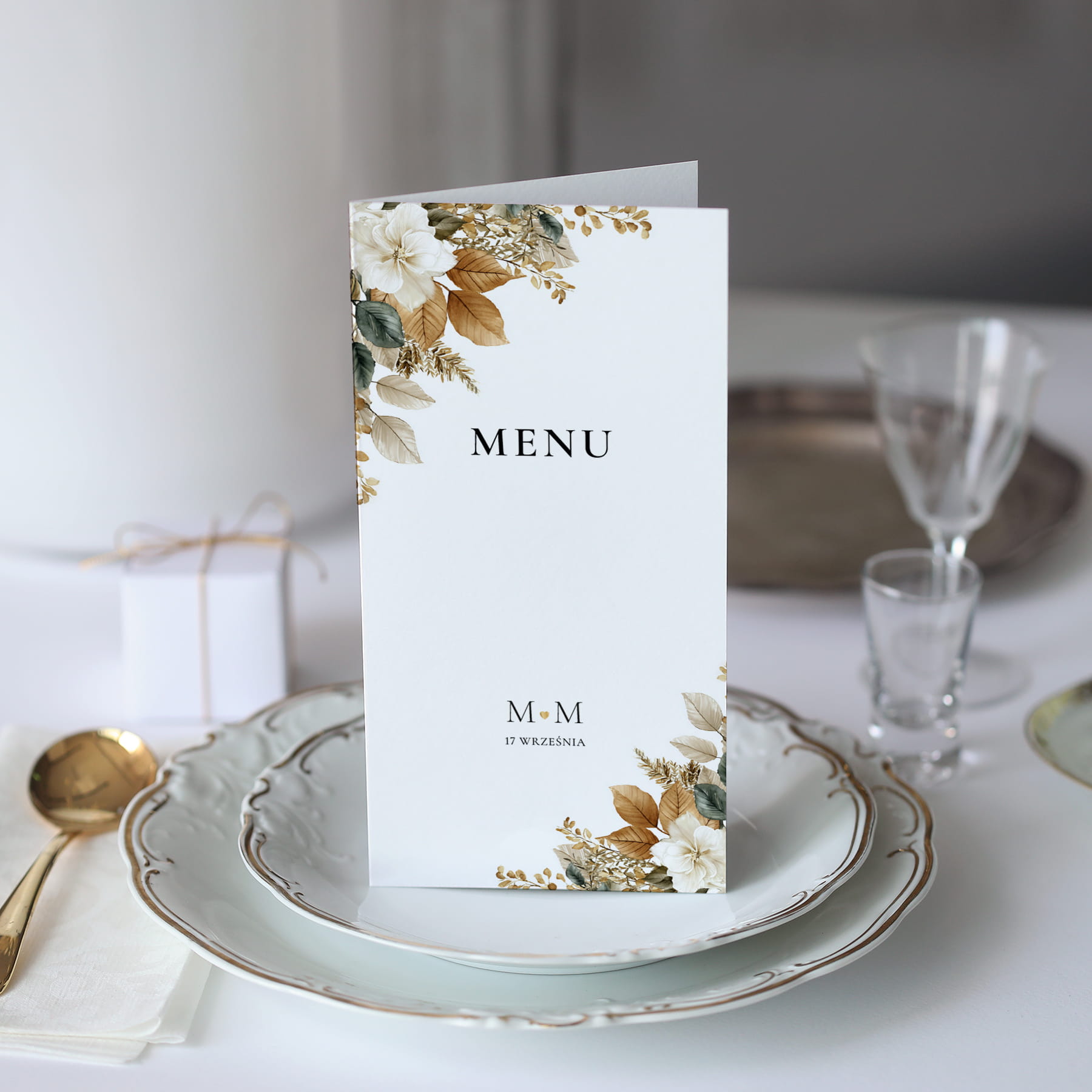 Karta menu ze złotymi liśćmi