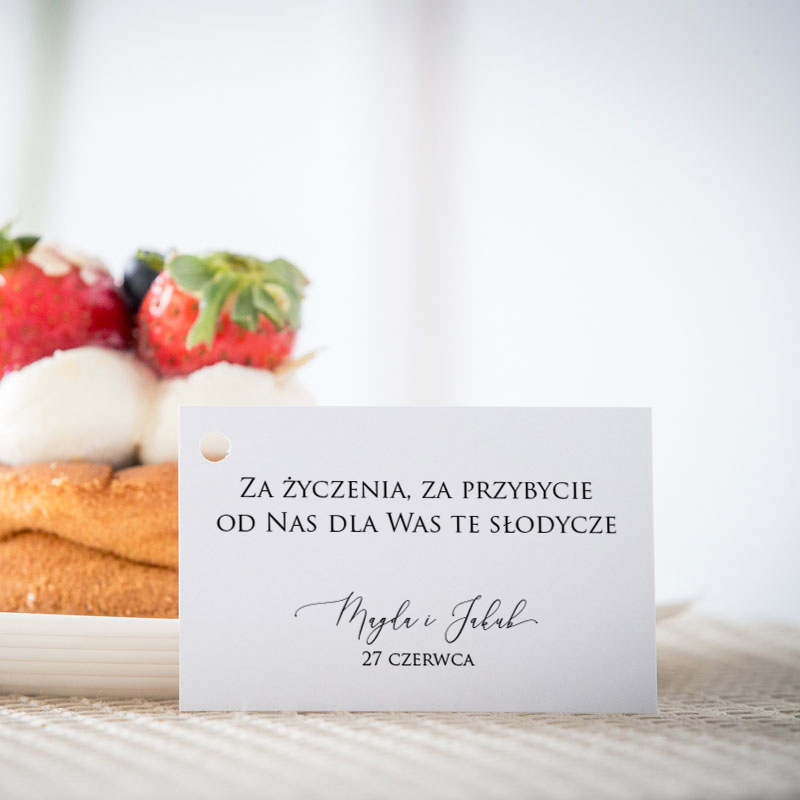 Bileciki do ciasta weselnego minimalistyczne