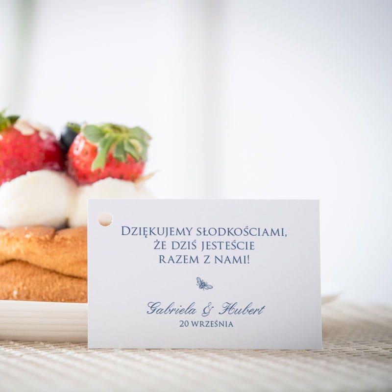 Karteczki do ciasta weselnego z klasycznym granatowym motywem