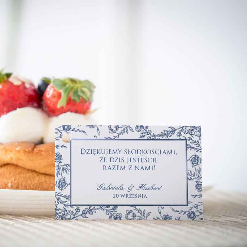 Karteczki do ciasta weselnego z motywem "Blue Heritage"