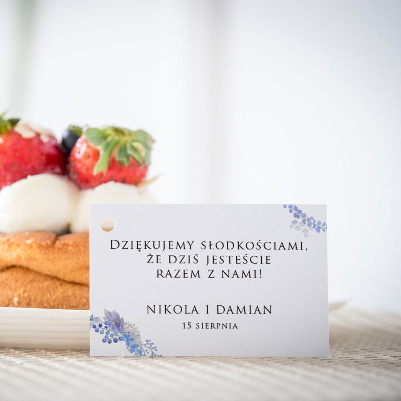 Karteczki do ciasta weselnego z niebieskim wianuszkiem