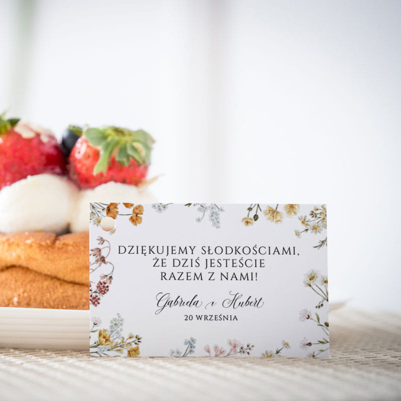 Karteczki do ciasta weselnego z rustykalnymi kwiatami