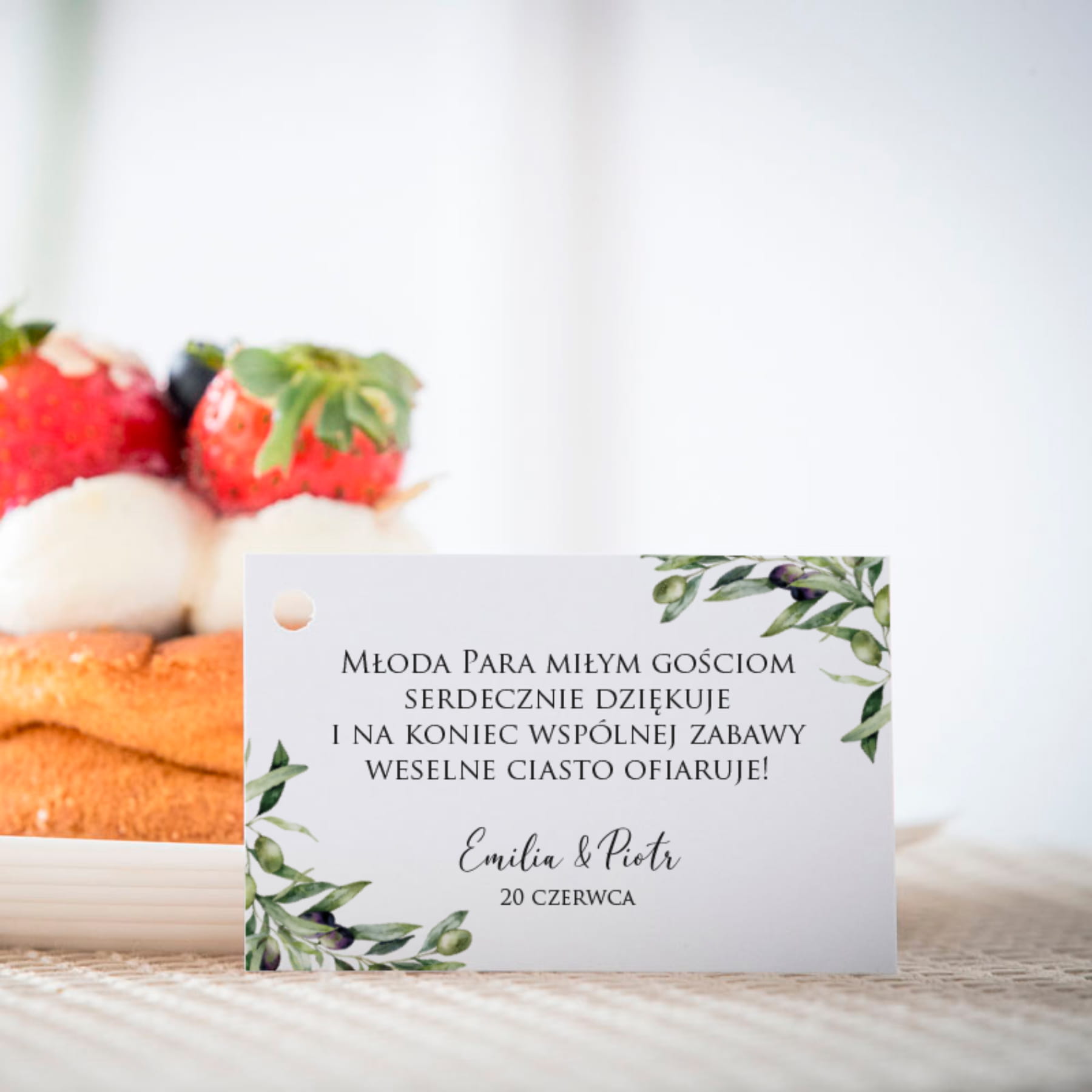 Bileciki do ciasta weselnego z gałązką oliwną