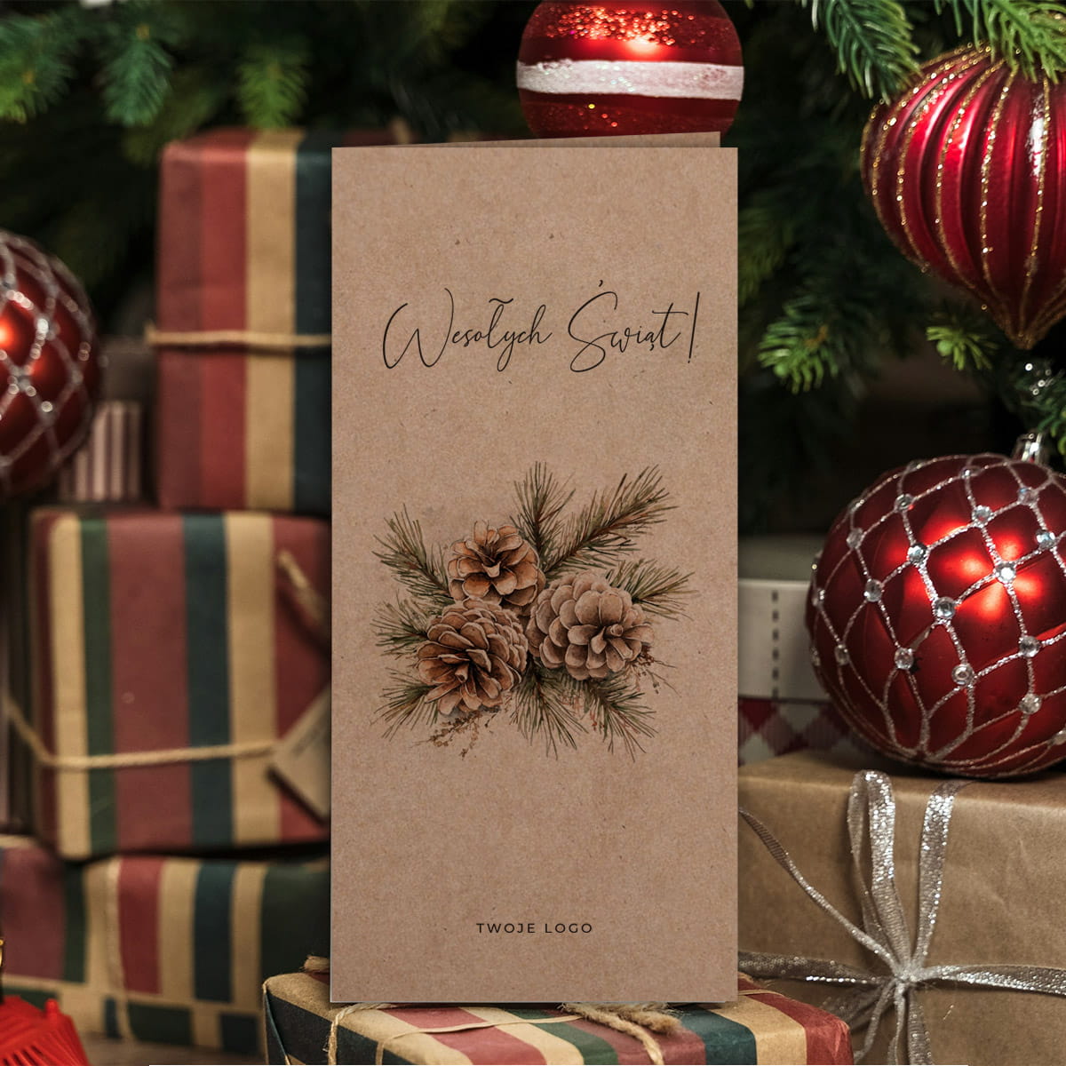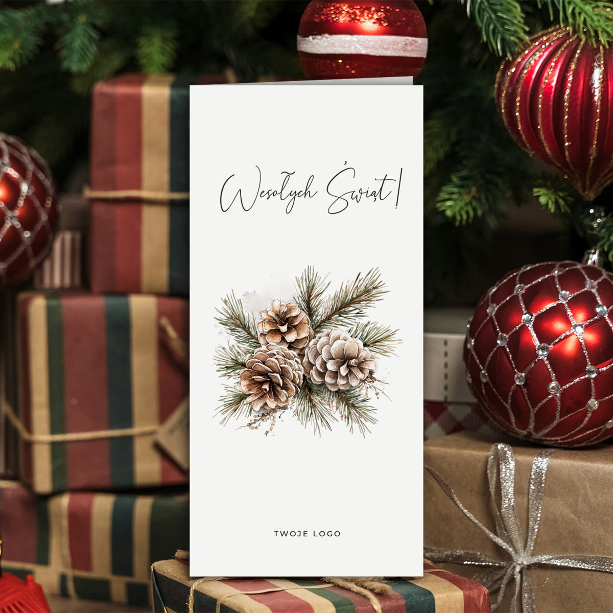 Uniwersalne Kartki świąteczno-noworoczne dla firm - wzór z gałązką choinki - format DL