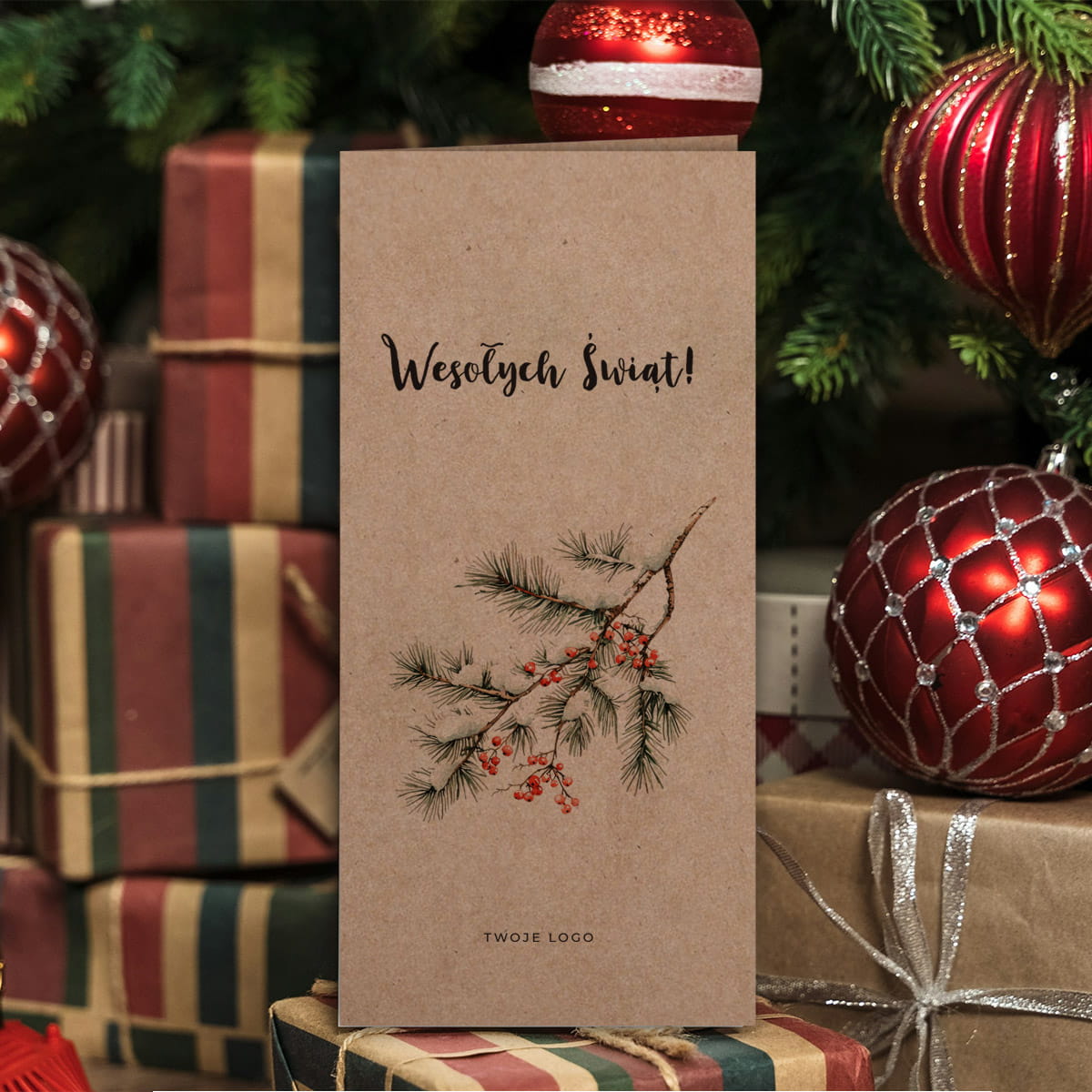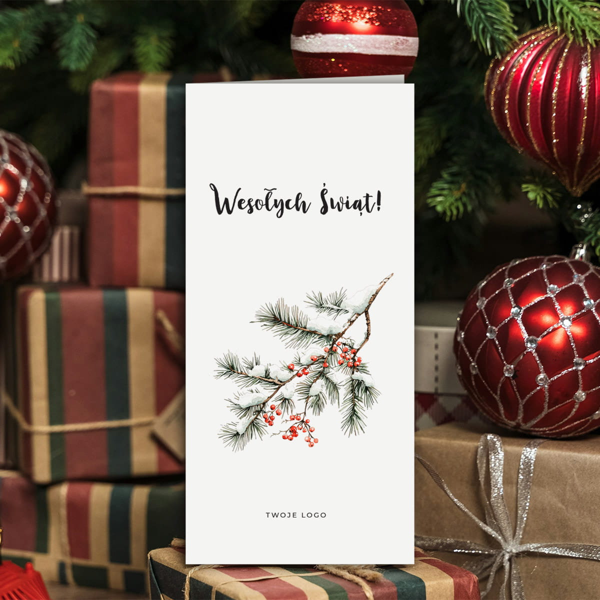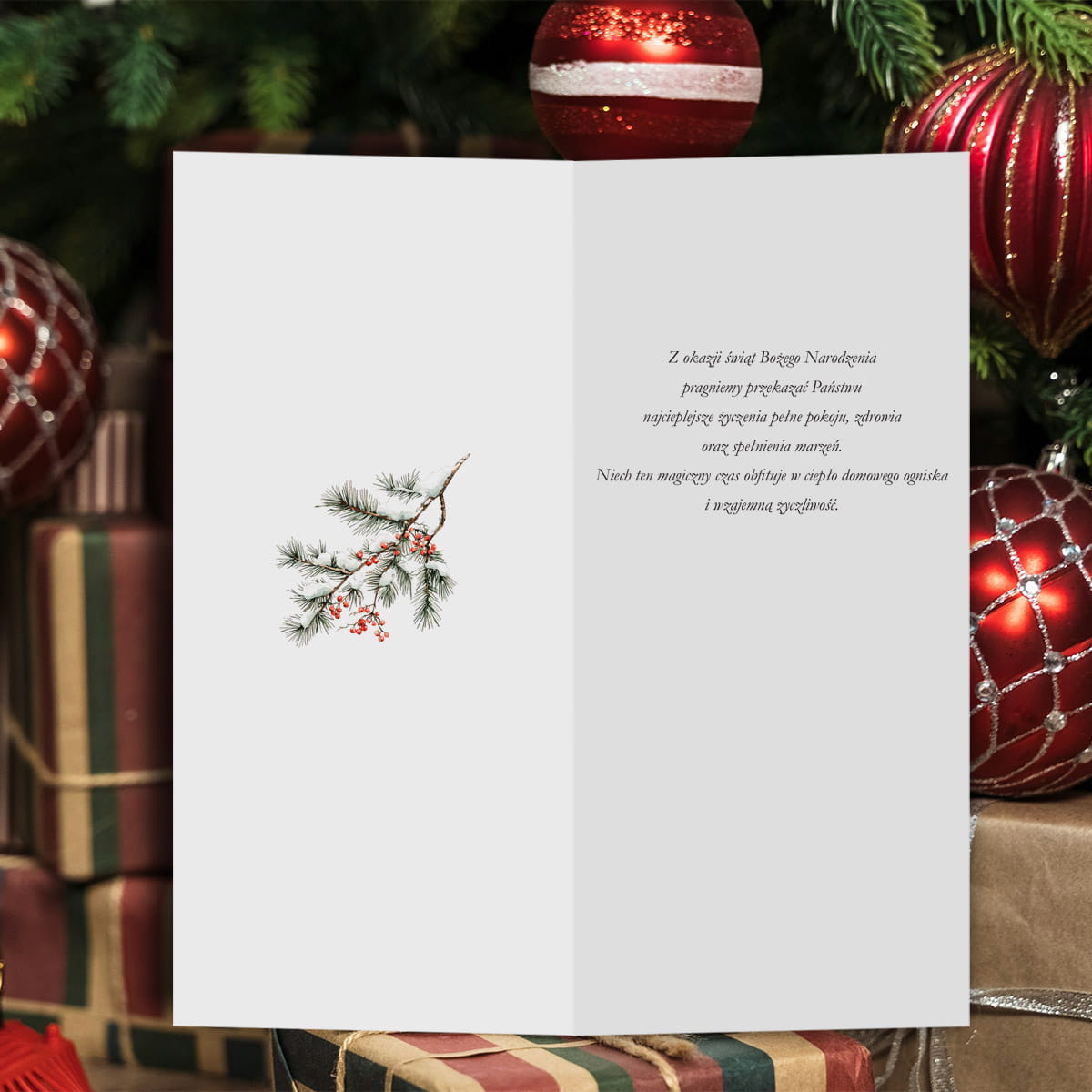 Uniwersalne Kartki świąteczno-noworoczne dla firm - wzór z gałązką - format DL