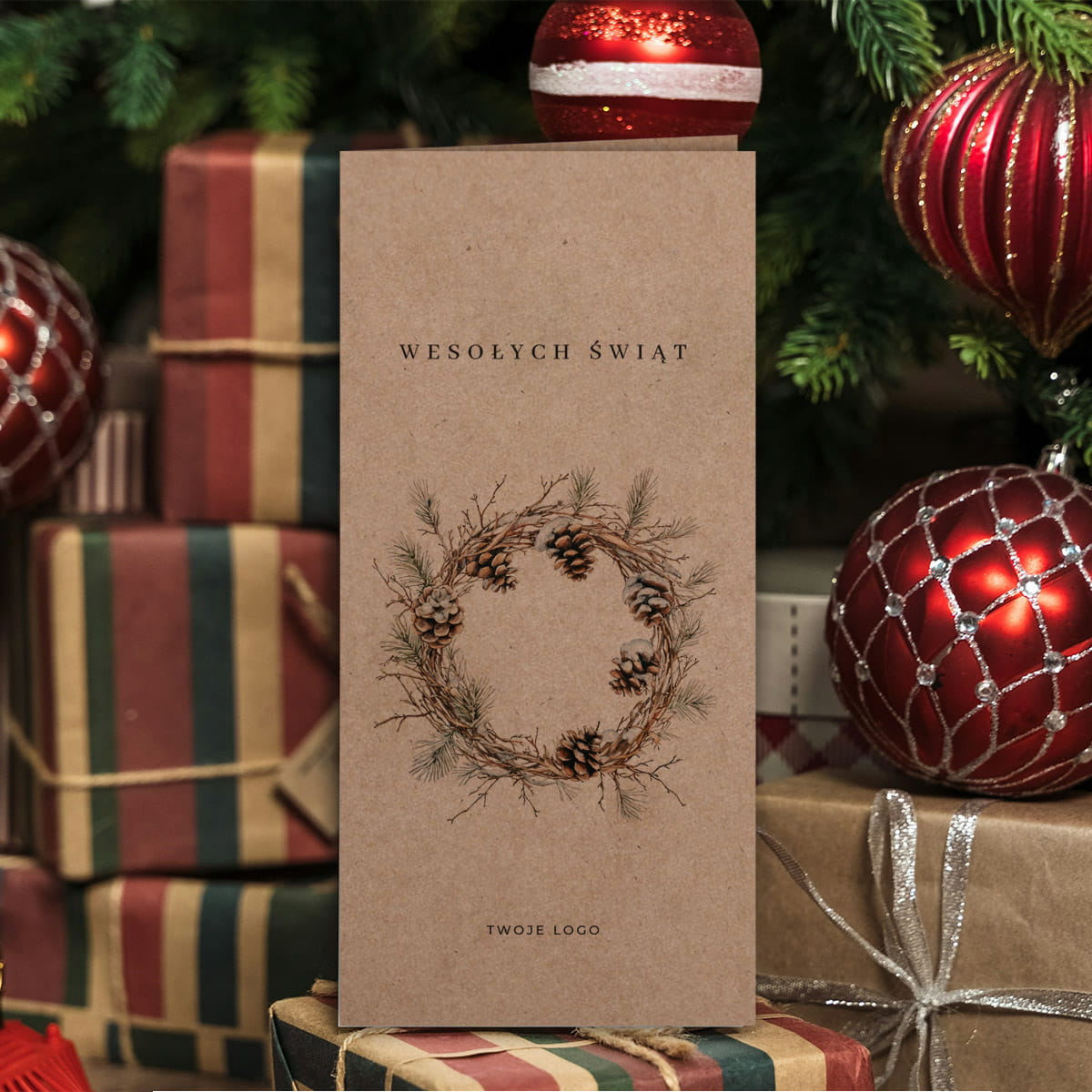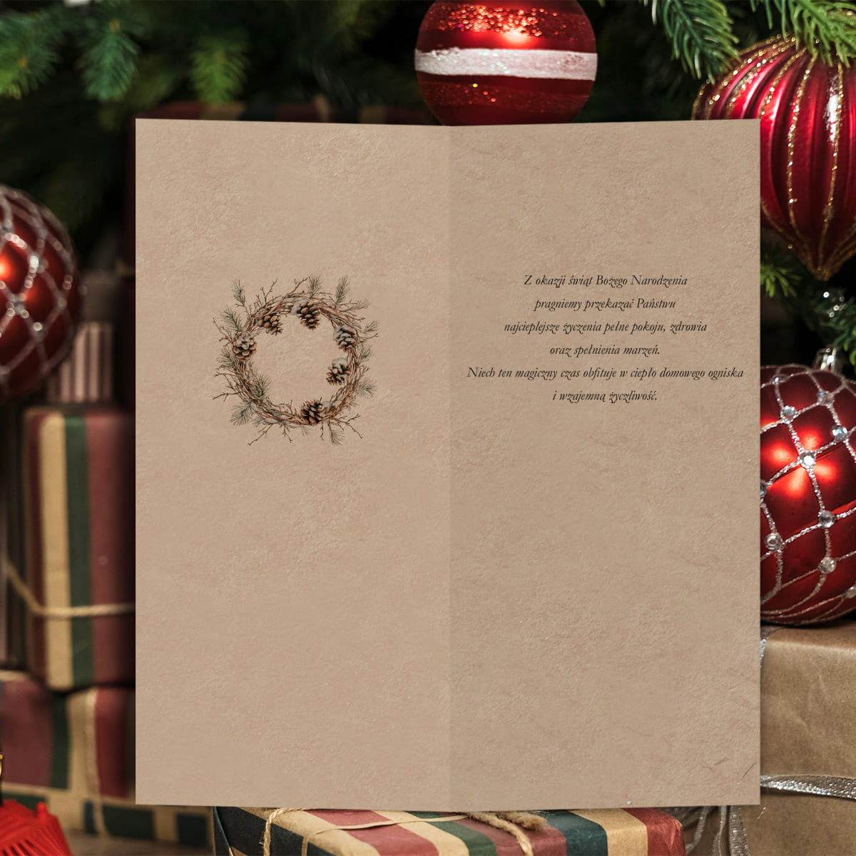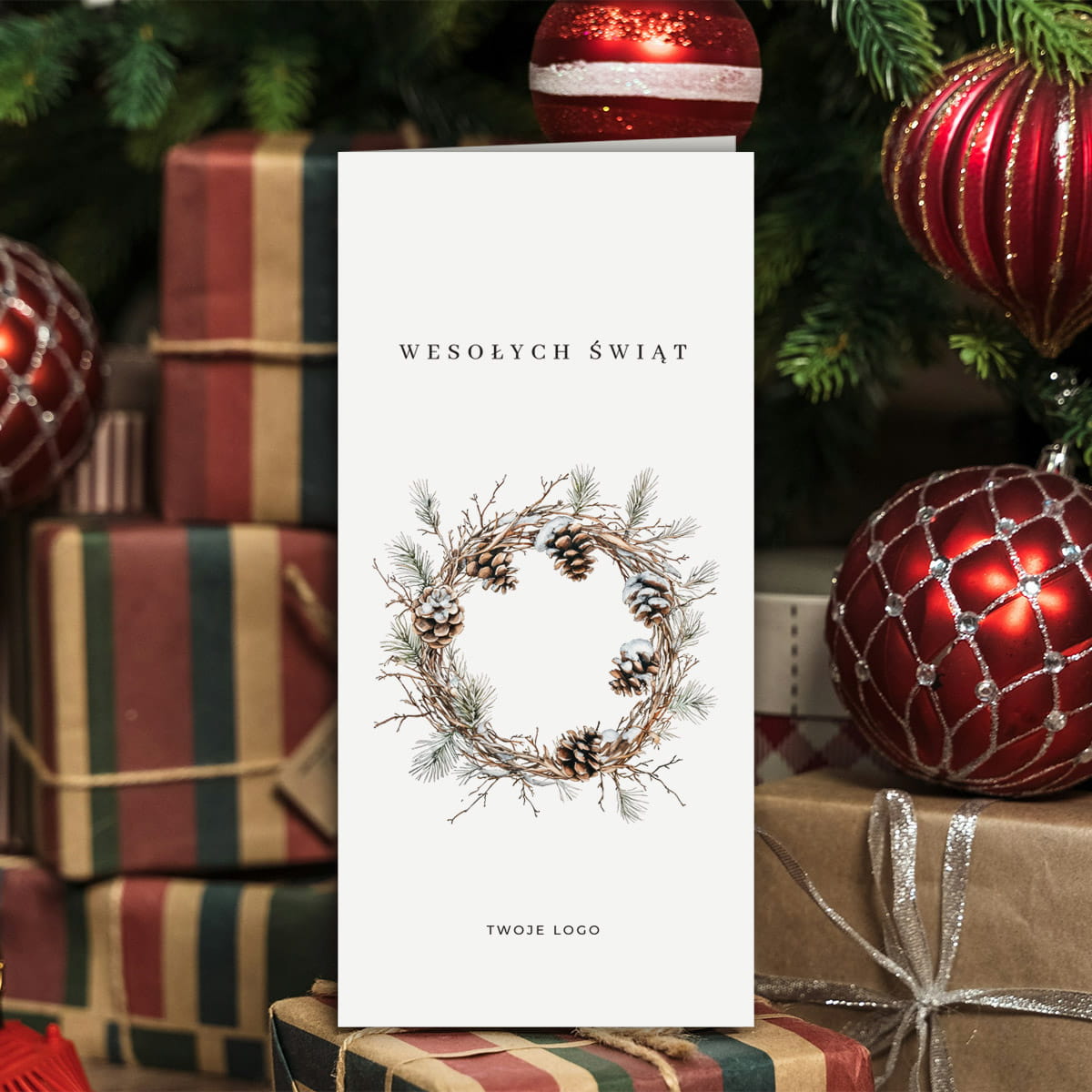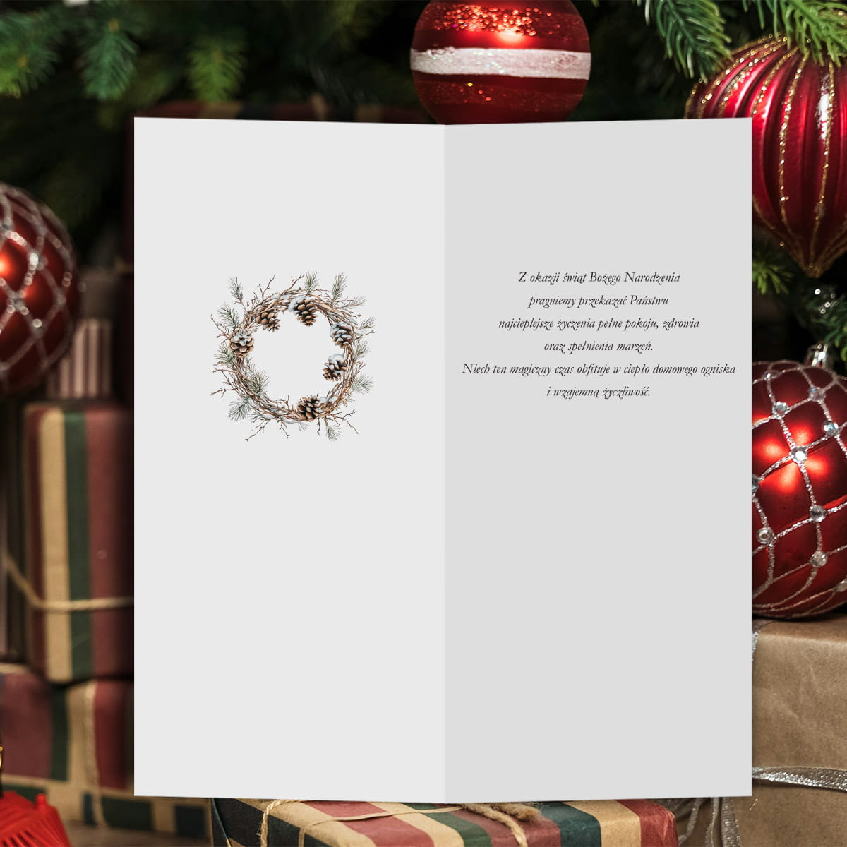 Uniwersalne Kartki świąteczno-noworoczne dla firm - zimowy wianek - format DL