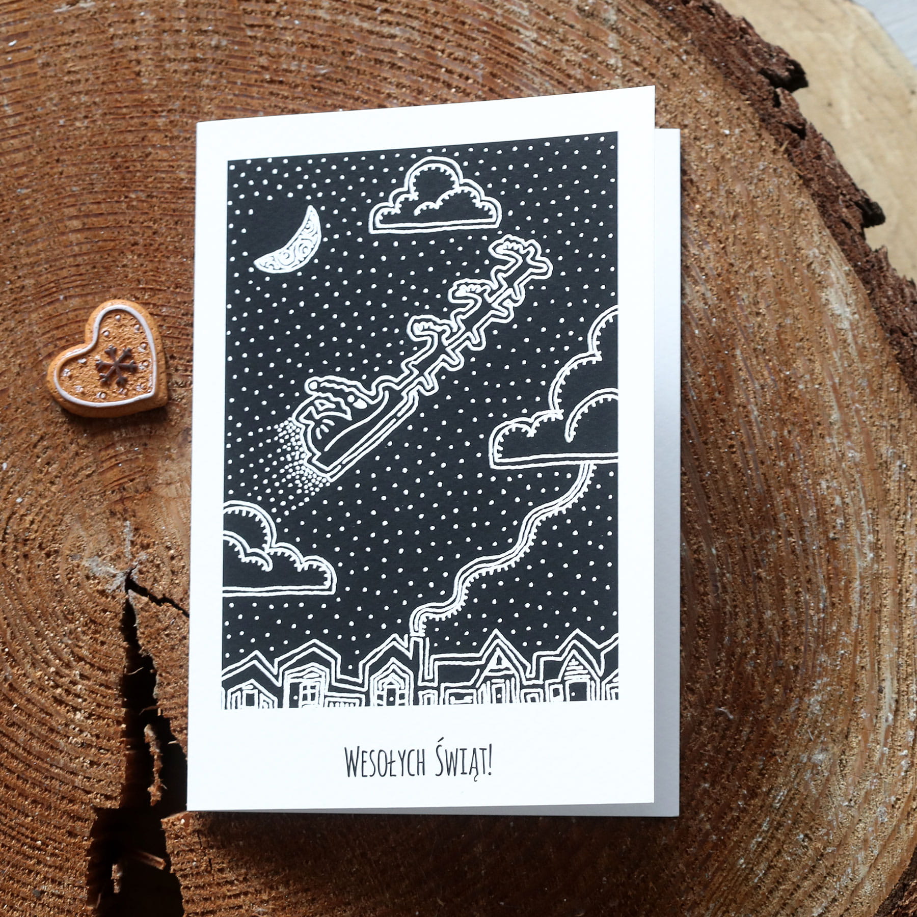 Kartki świąteczno-noworoczne dla firm - z litografią mikołaja