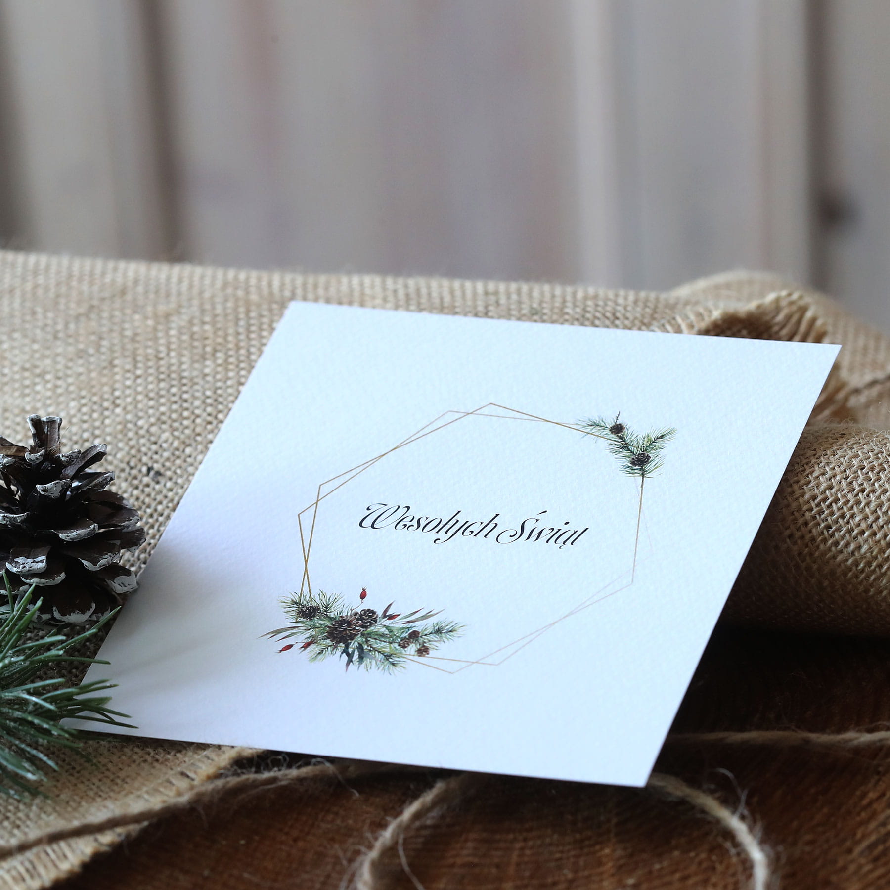 Kartki firmowe na Boże Narodzenie z geometryczną ramką - 14,5 x 14,5 cm - nierozkładane