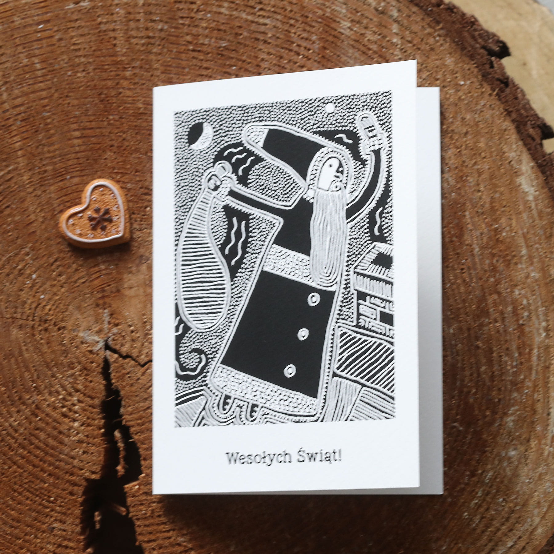 Kartki świąteczno-noworoczne dla firm - z litografią mikołaja