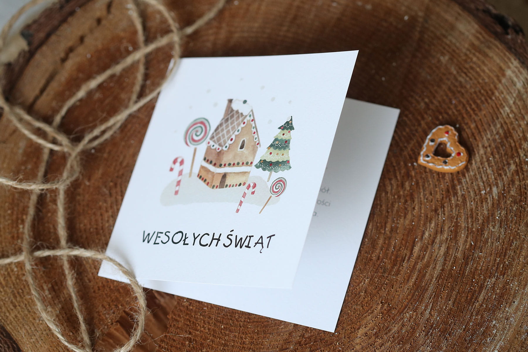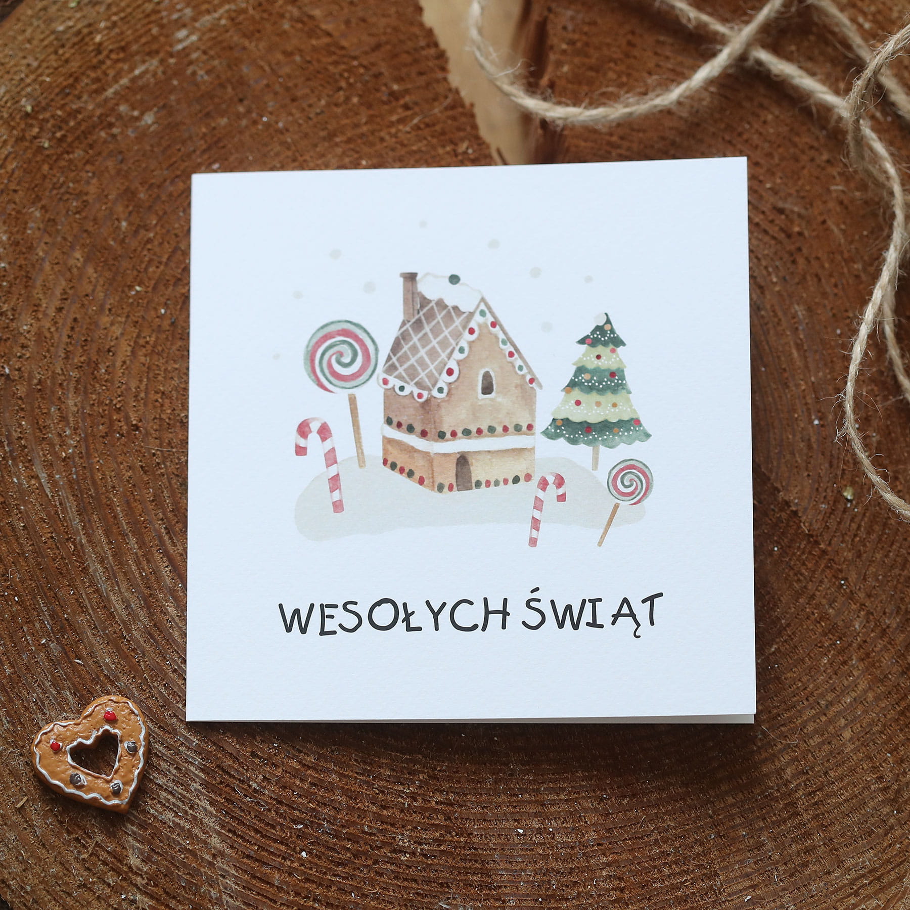 Kartki firmowe na Boże Narodzenie z piernikowym domkiem - 14,5x14,5 cm