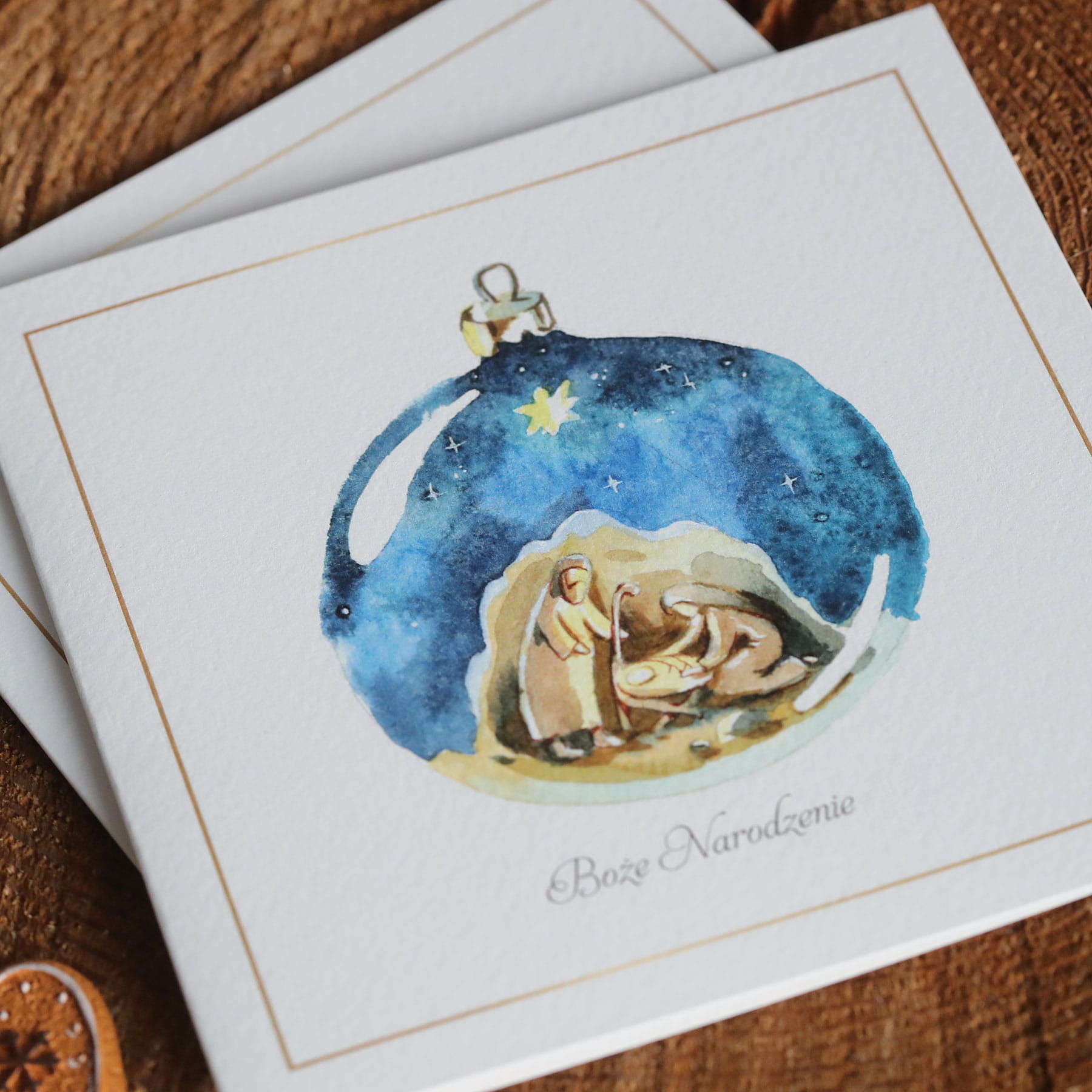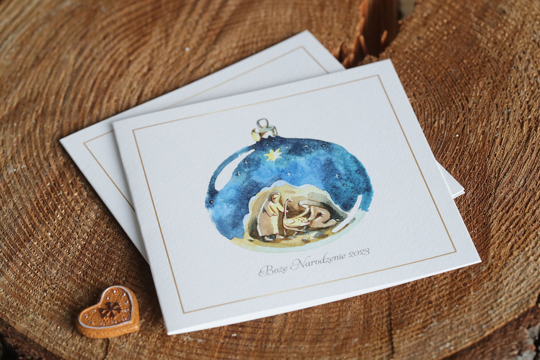 Kartki firmowe na Boże Narodzenie z religijnym motywem szopki - 14,5x14,5 cm