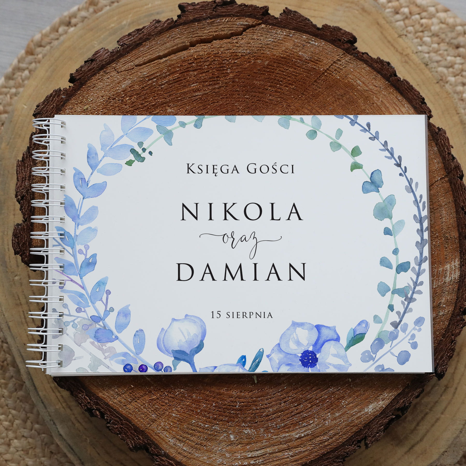 Księga gości klasyczna lub z ankietami - wzór z błękitnym wianuszkiem