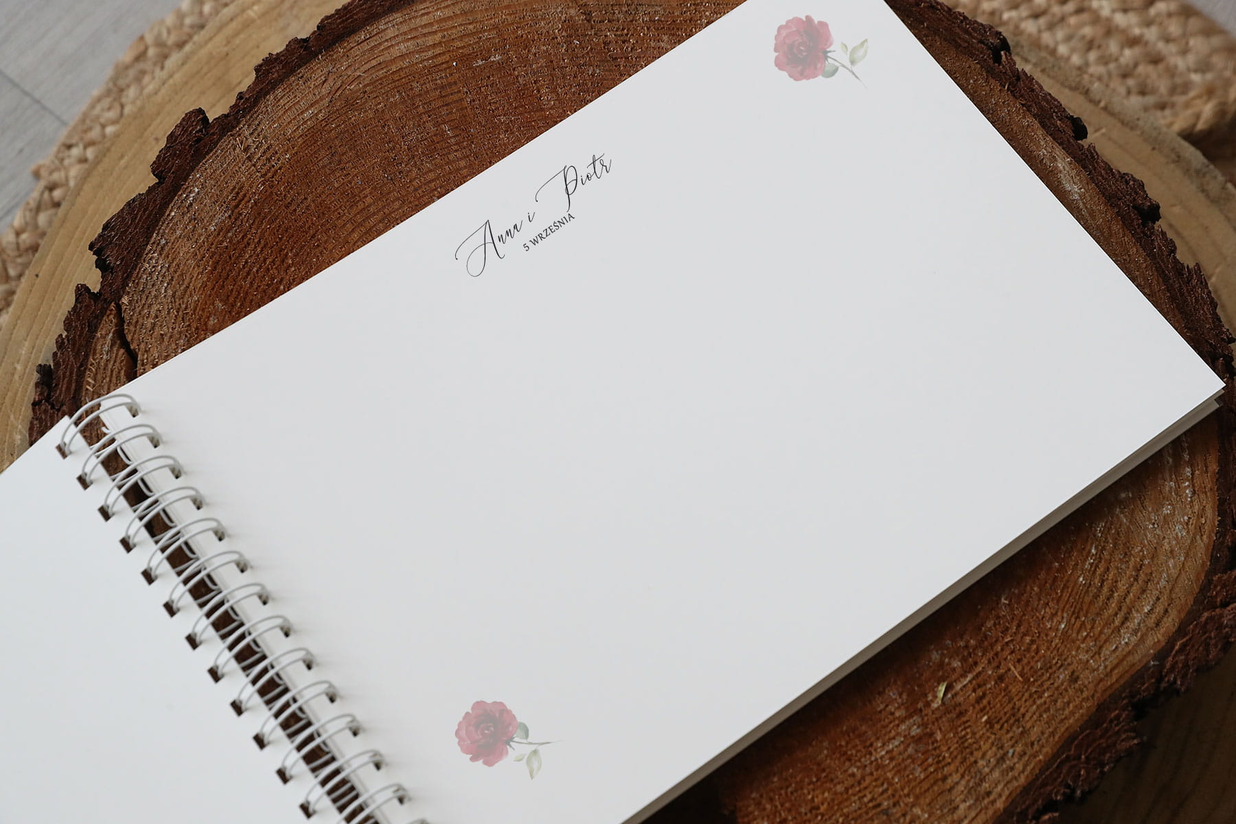 Dzięki oprawie spiralowanej do księgi zmieszczą się nie tylko wpisy, goście śmiało mogą wklejać fotografie, czy zdjęcia z fotobudki.