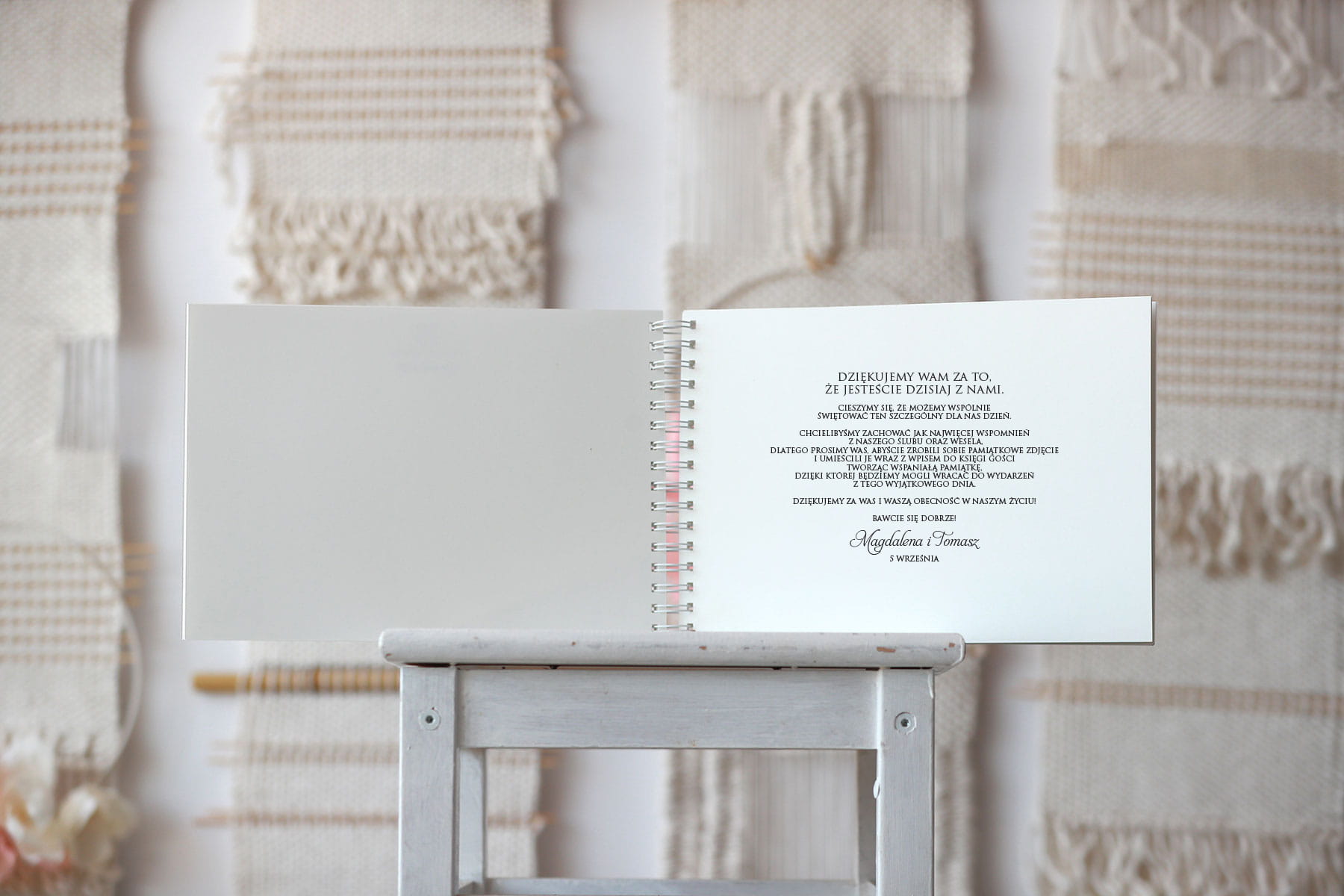 Tak, aby na lewej stronie było miejsce na umieszczenie życzeń, zdjęć lub innych wpisów do gości.