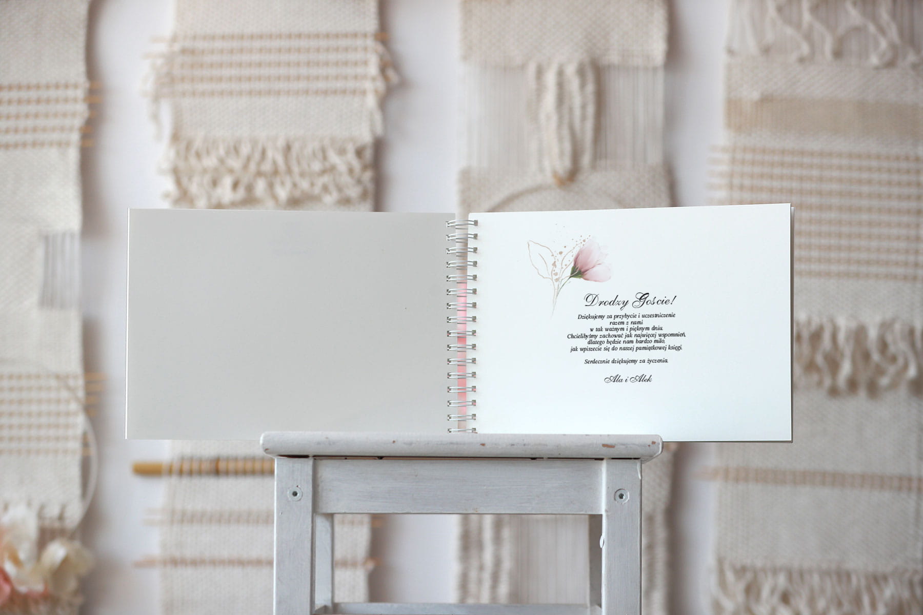 Tak, aby na lewej stronie było miejsce na umieszczenie życzeń, zdjęć lub innych wpisów do gości.