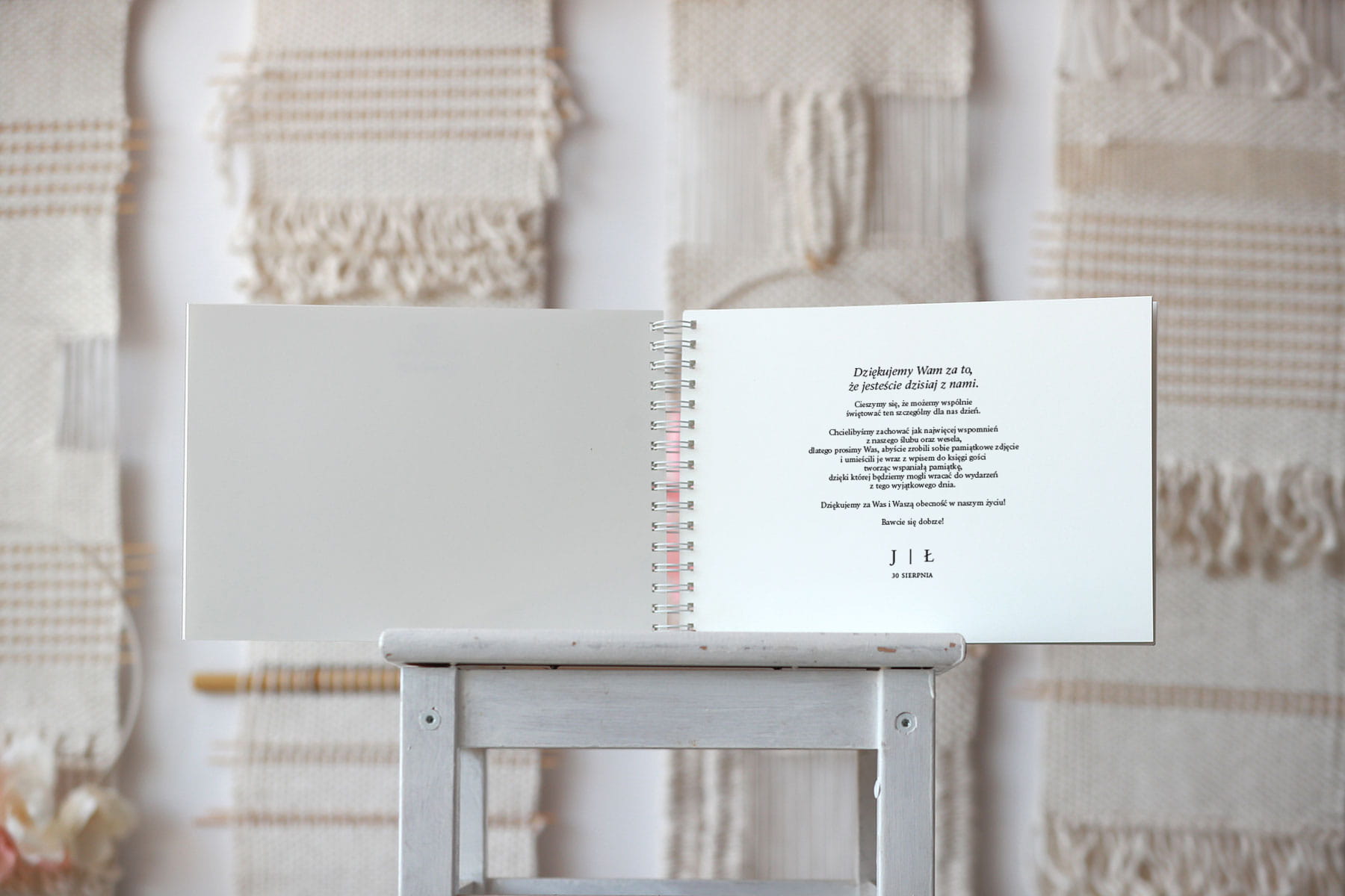 Na pierwszej stronie po otworzeniu umieścimy podziękowania dla gości i prośbę o wpisywanie się, które dołączycie do zamówienia.
