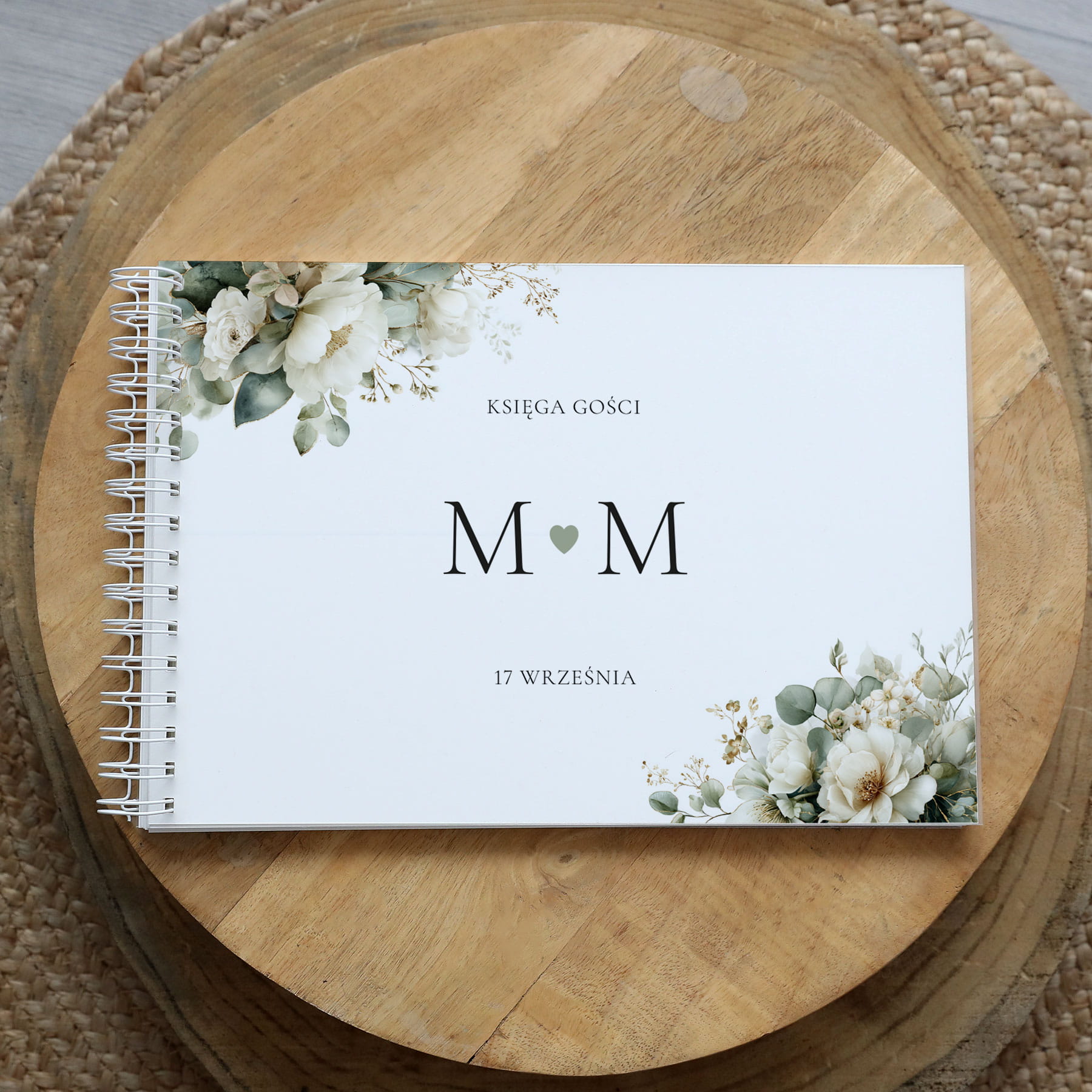 Personalizowana Księga Gości z okładką w stylu Waszej papeterii weselnej.
