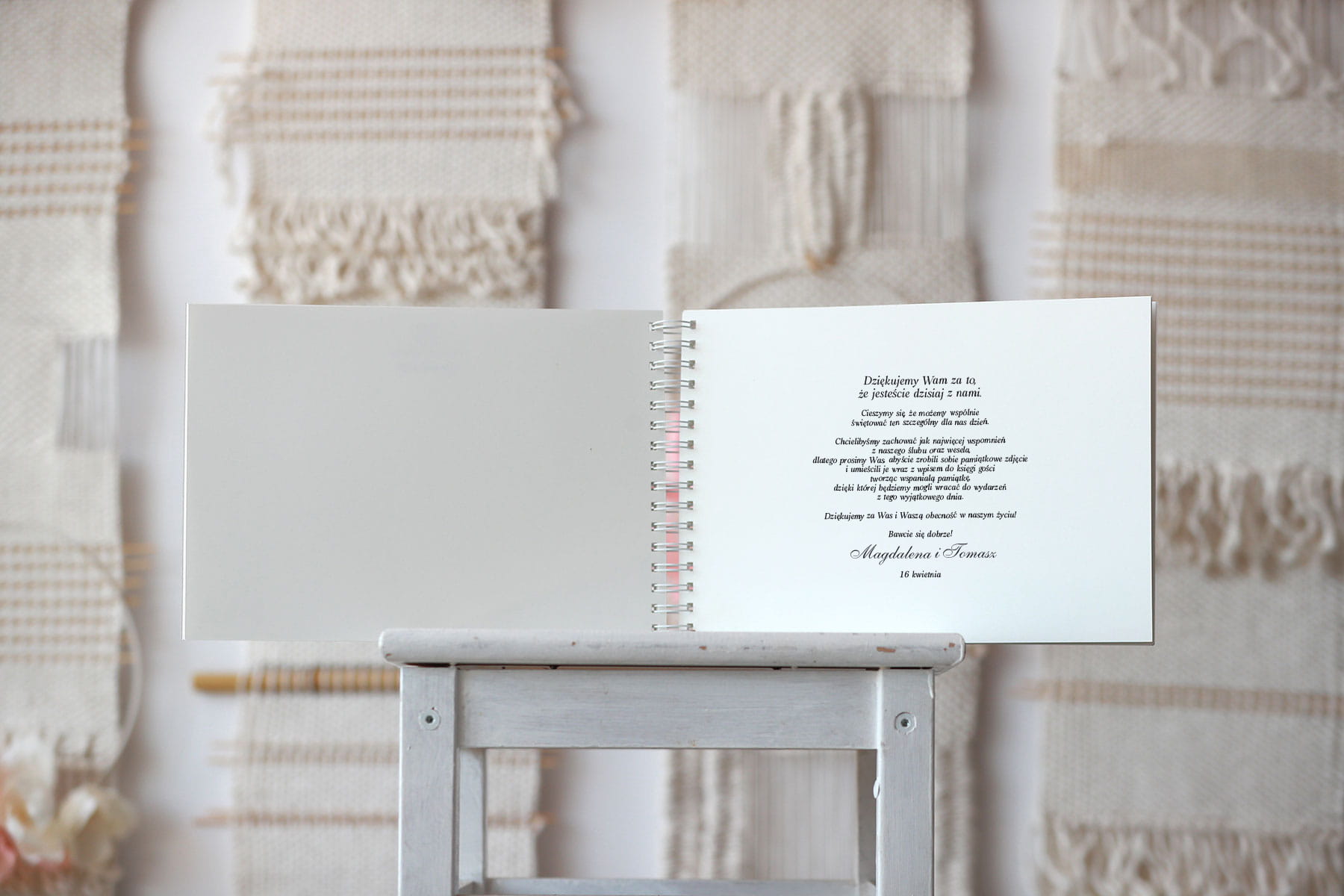 Tak, aby na lewej stronie było miejsce na umieszczenie życzeń, zdjęć lub innych wpisów do gości.