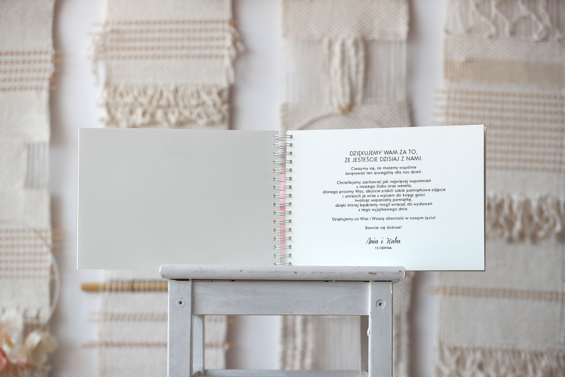 Tak, aby na lewej stronie było miejsce na umieszczenie życzeń, zdjęć lub innych wpisów do gości.