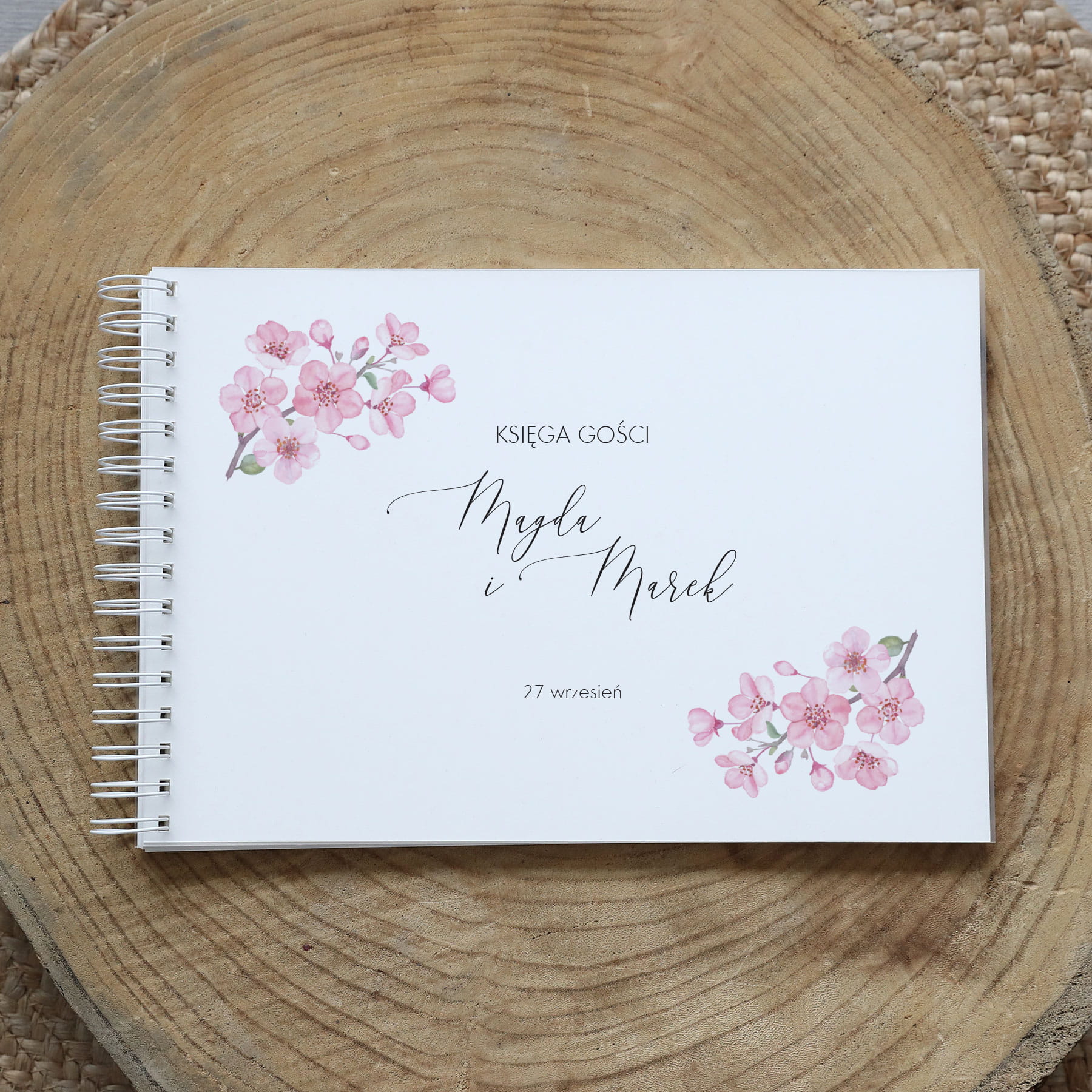 Księga gości klasyczna lub z ankietami - wzór z malowanymi kwiatami jabłoni