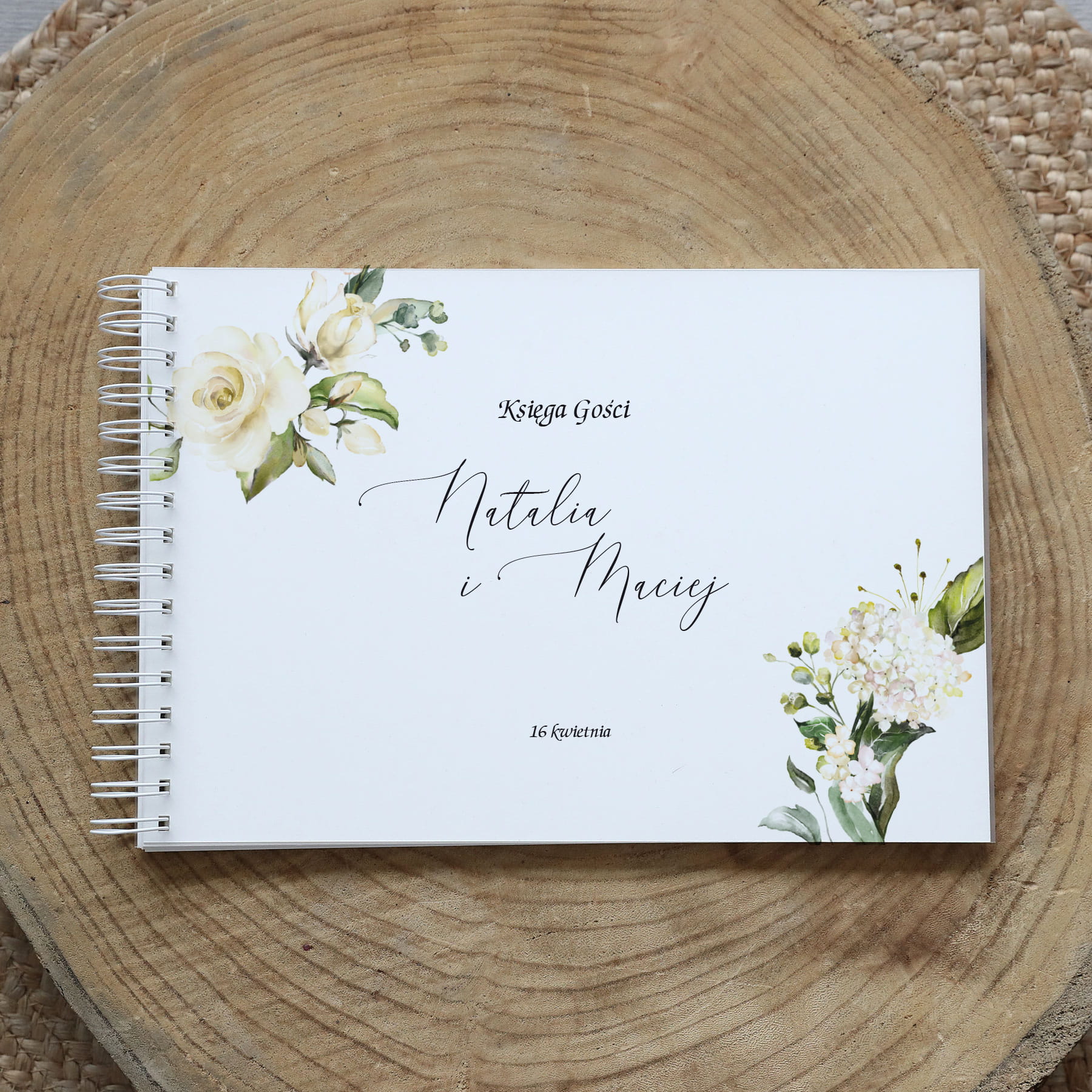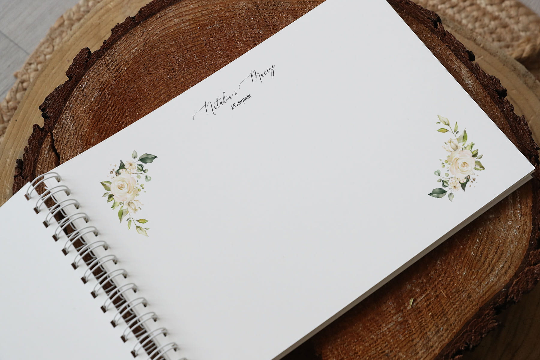 Księga gości klasyczna lub z ankietami - wzór z motywem białych róż
