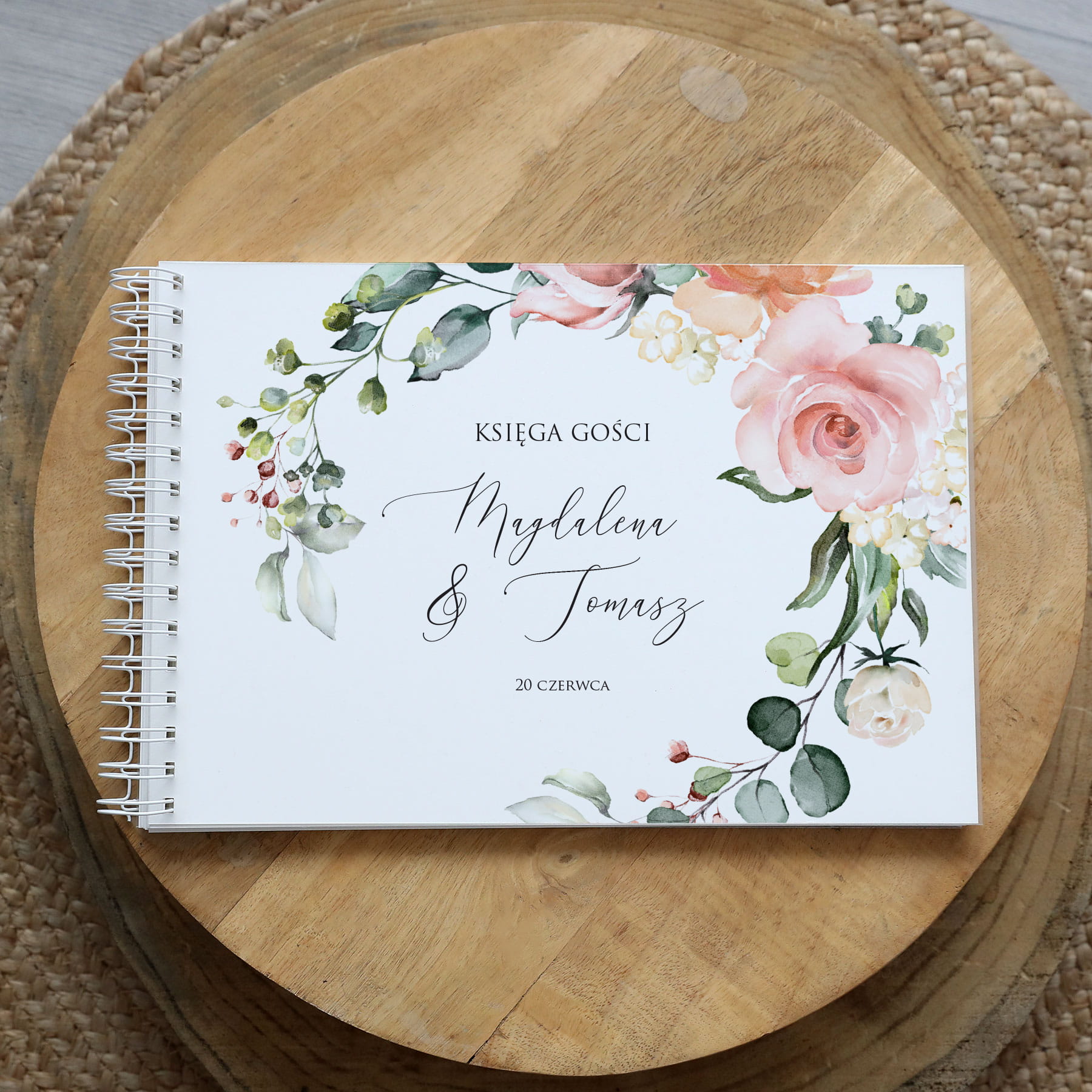 Personalizowana Księga Gości z okładką w stylu Waszej papeterii weselnej.