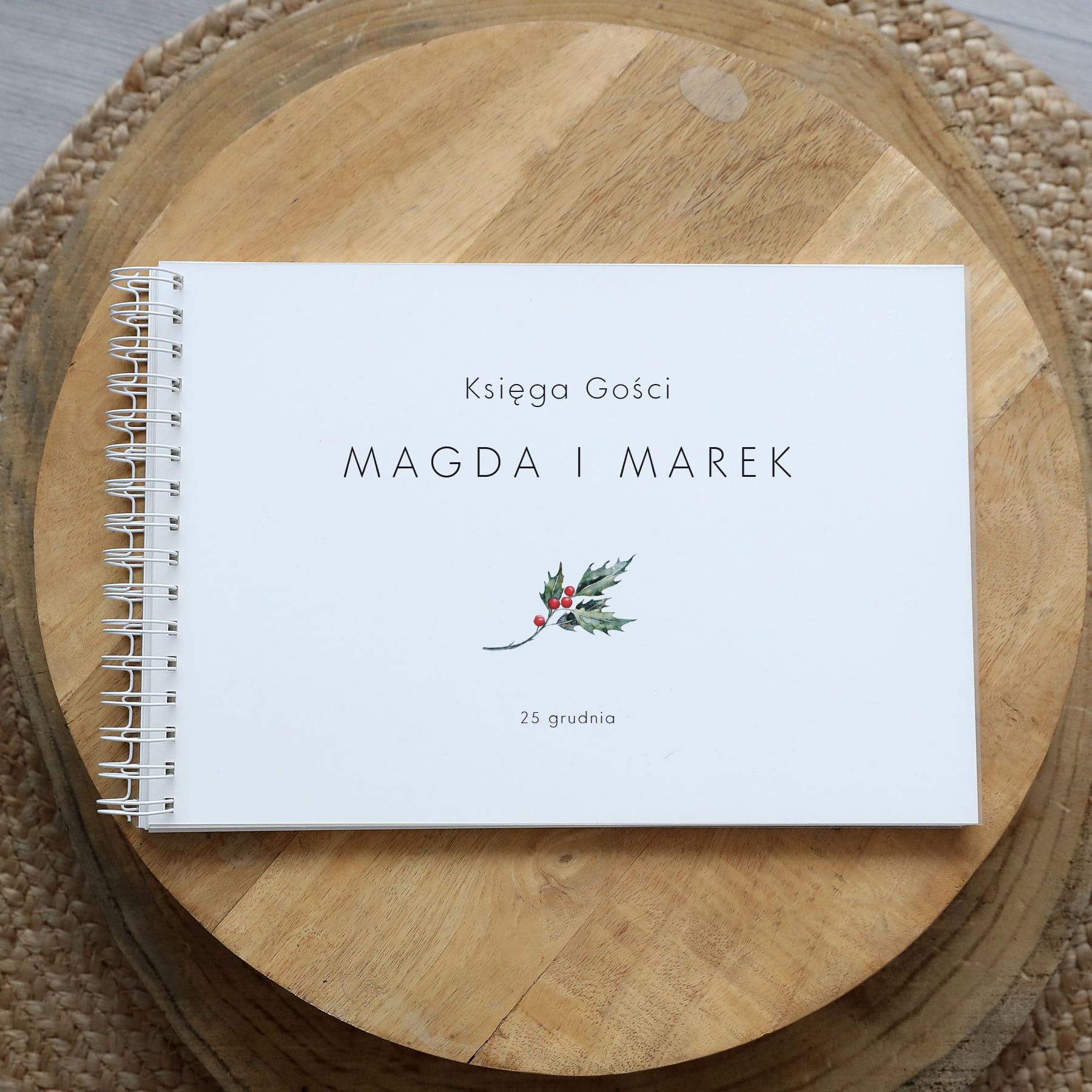 Księga gości klasyczna lub z ankietami - wzór z ostrokrzewem