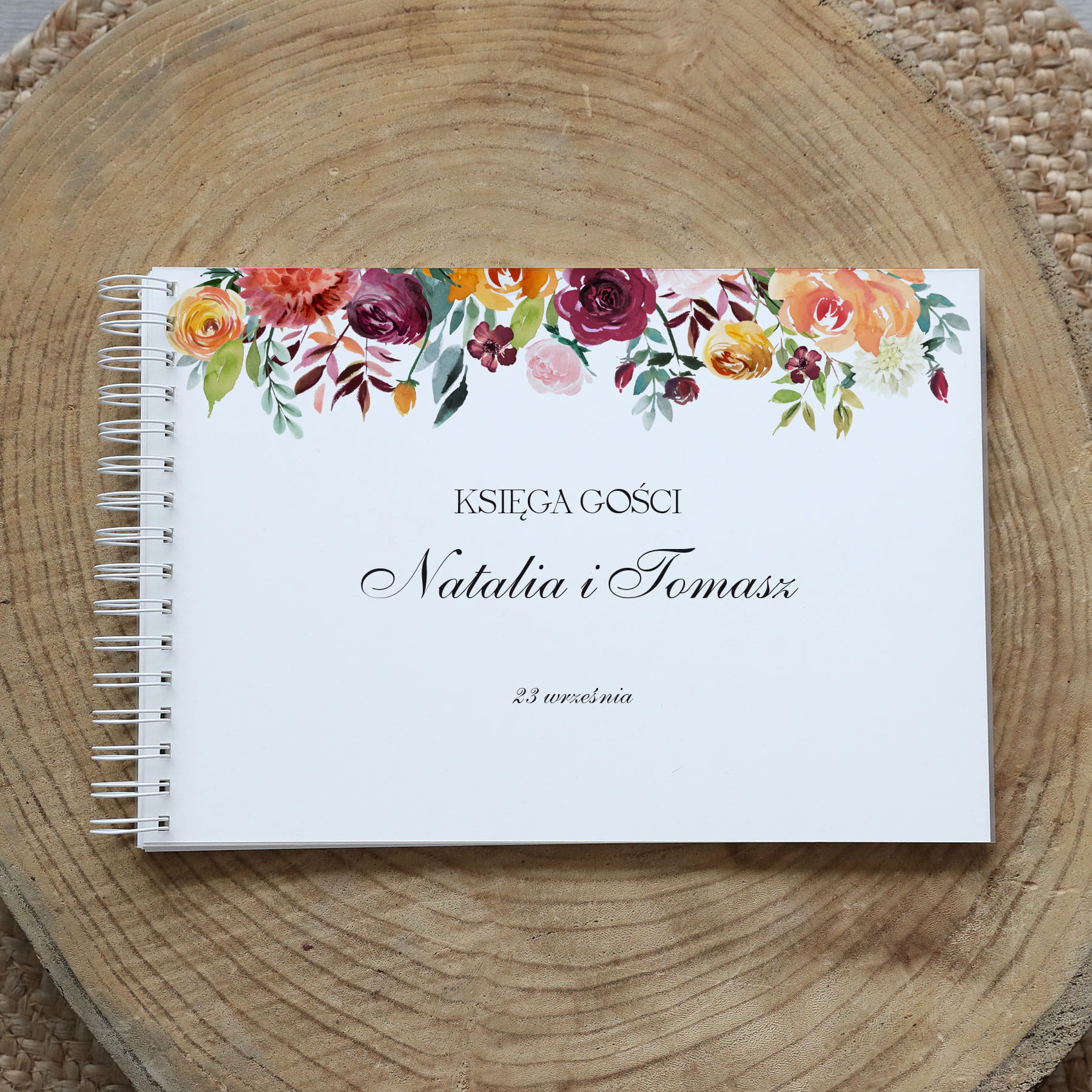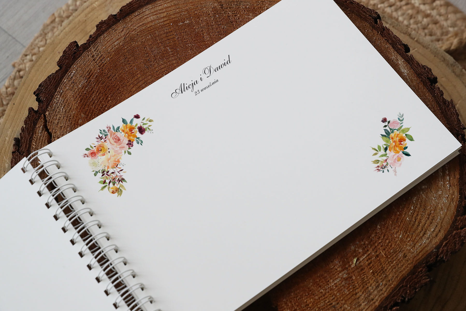 Księga gości klasyczna lub z ankietami - wzór z pomarańczowymi kwiatami boho