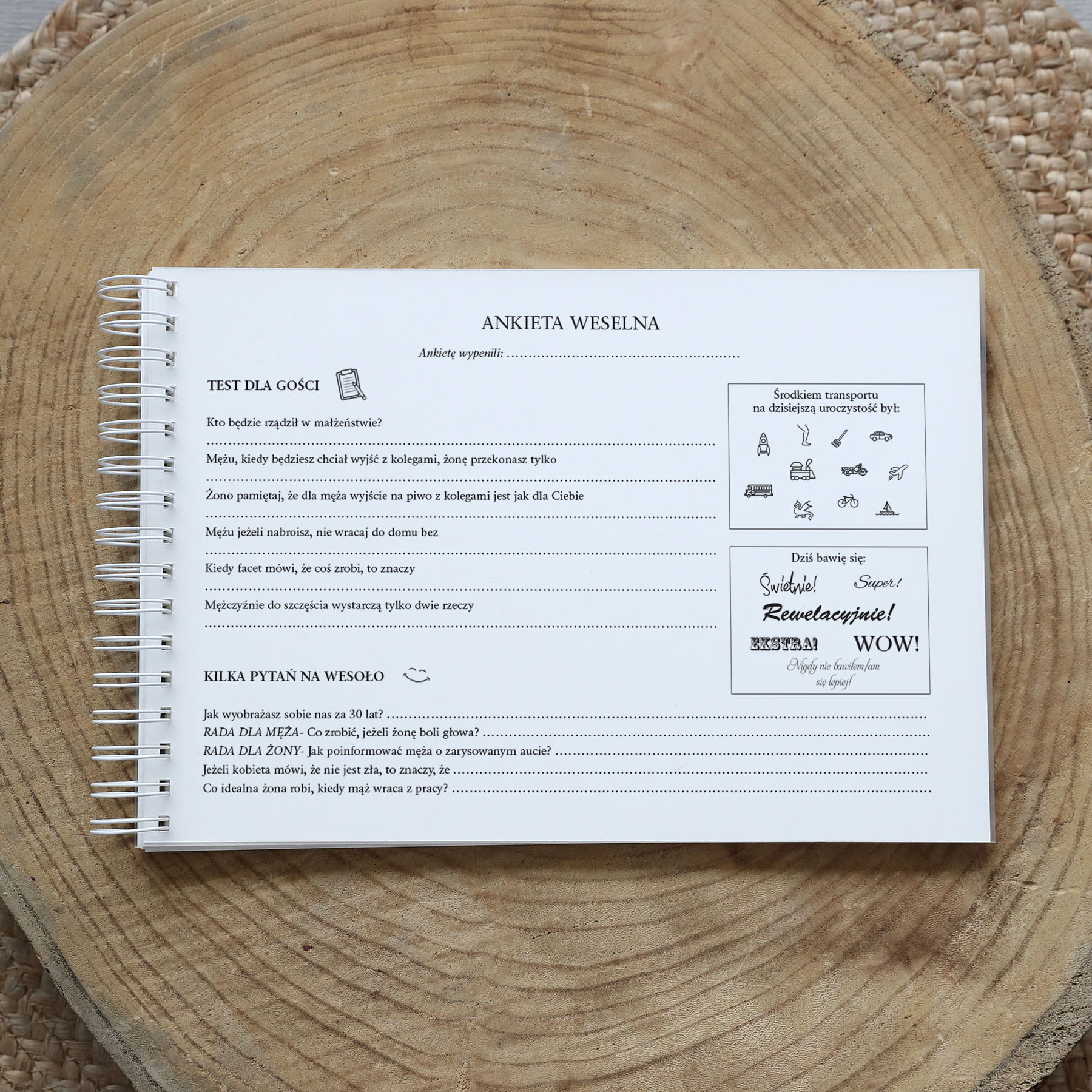 Do wyboru macie 5 wzorów ankiet - jedną z nich wydrukujemy w księdze. Nie robimy miksów ankiet.