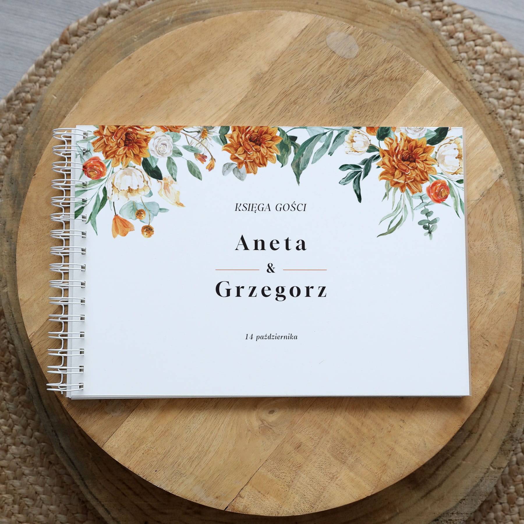 Księga gości klasyczna lub z ankietami - wzór z pomarańczowymi kwiatami
