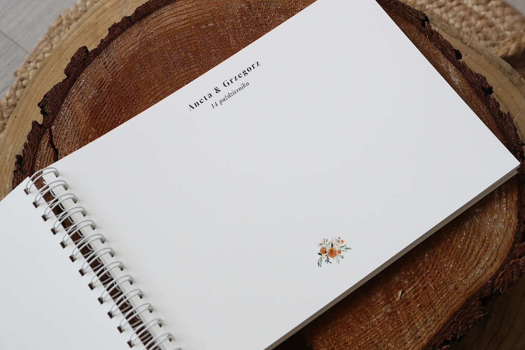Dzięki oprawie spiralowanej do księgi zmieszczą się nie tylko wpisy, goście śmiało mogą wklejać fotografie, czy zdjęcia z fotobudki.