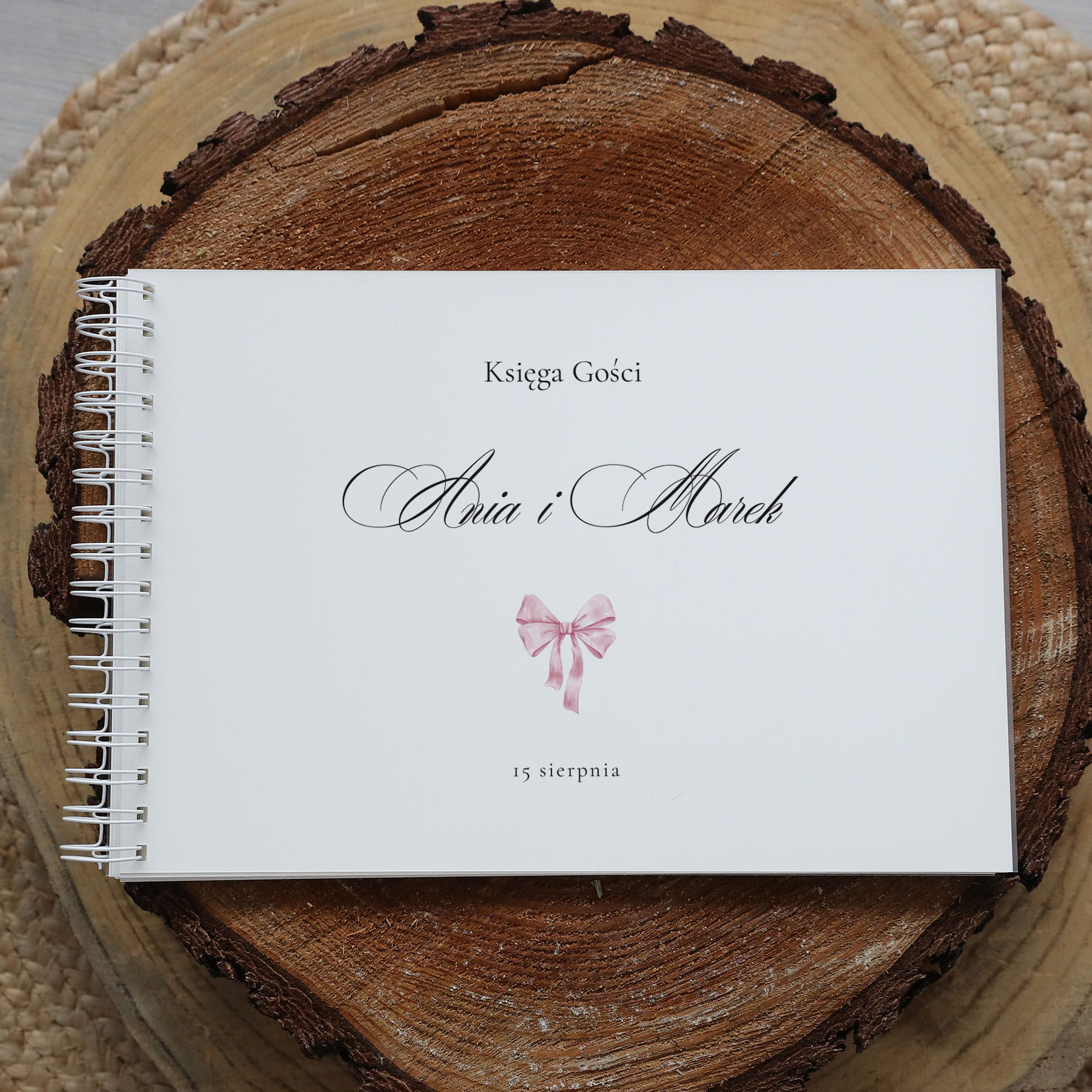 Księga gości klasyczna lub z ankietami - wzór z różową wstążeczką