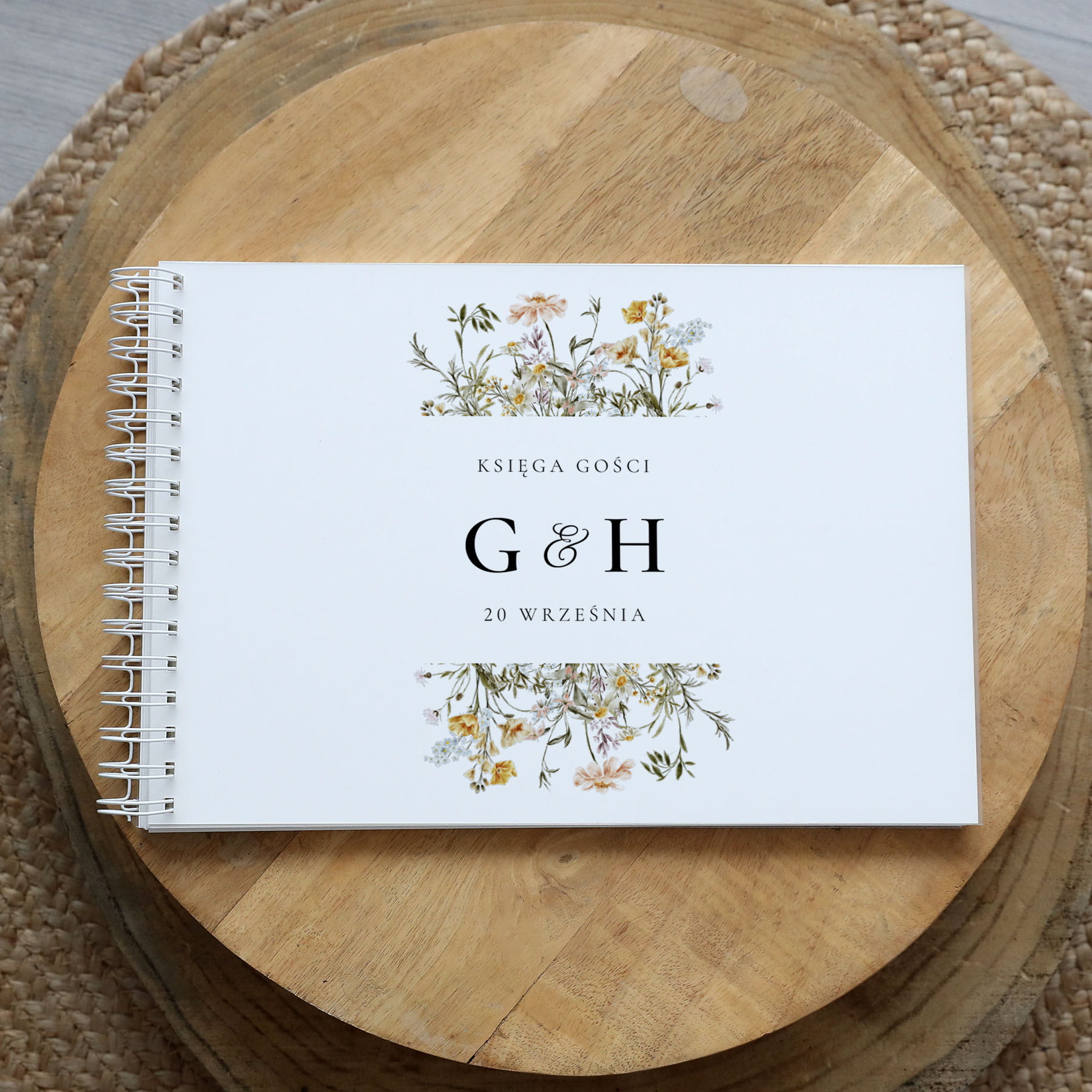 Księga gości klasyczna lub z ankietami - wzór z rustykalnym motywem polnych kwiatów