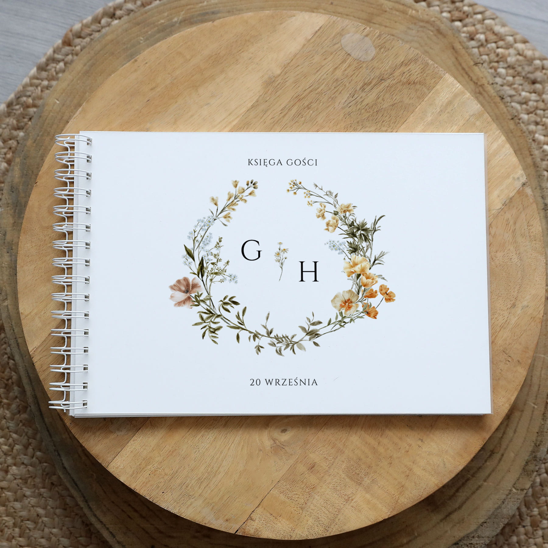 Księga gości klasyczna lub z ankietami - wzór z rustykalnym wiankiem